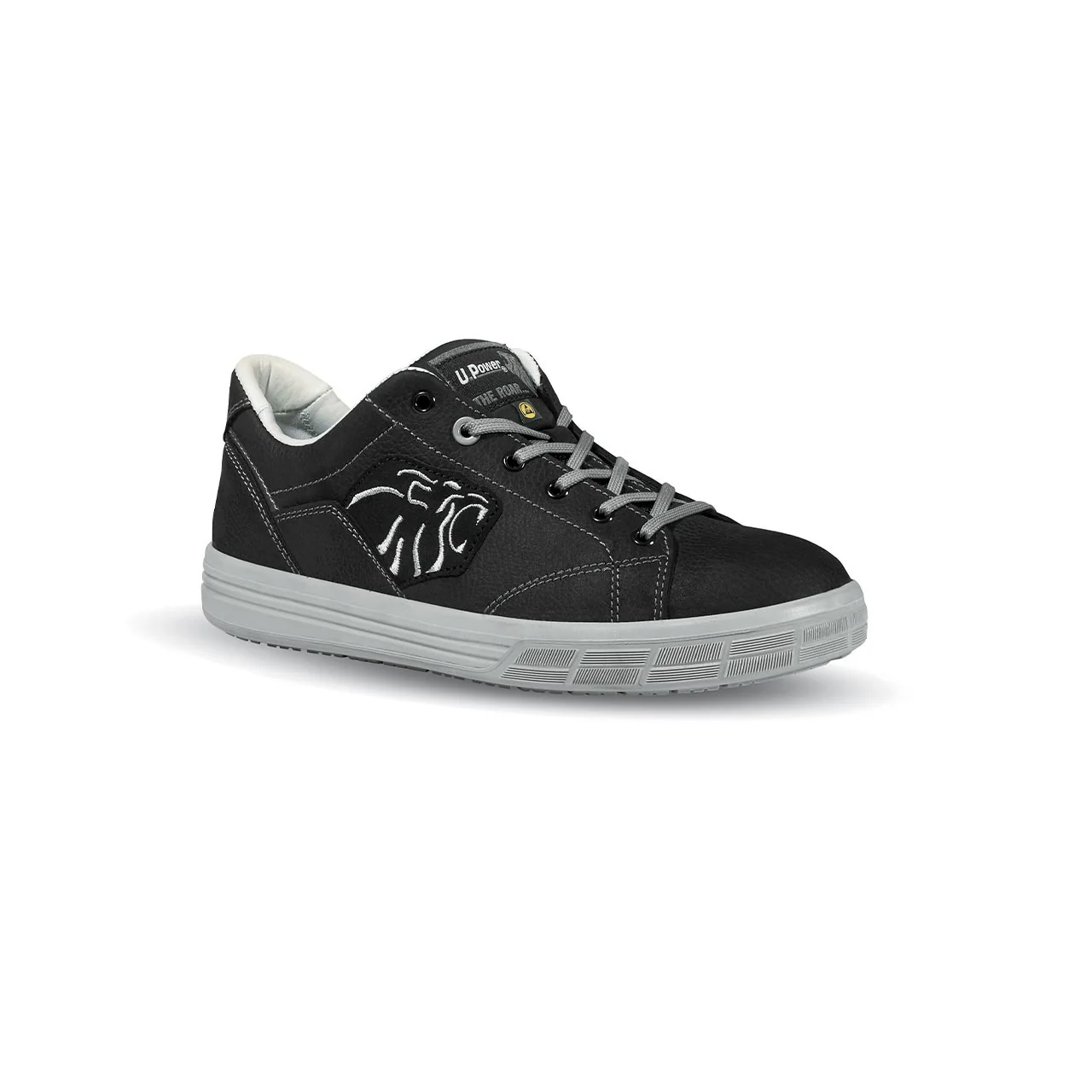 Scarpe antinfortunistiche basse, leggere e comode u power della linea The Roar, con tomaia in pelle Nabuk naturale bottalato idrorepellente, puntale in alluminio, antiperforazione, antiscivolo e suola PU/PU LIGHT GRIP, S3 SRC ESD