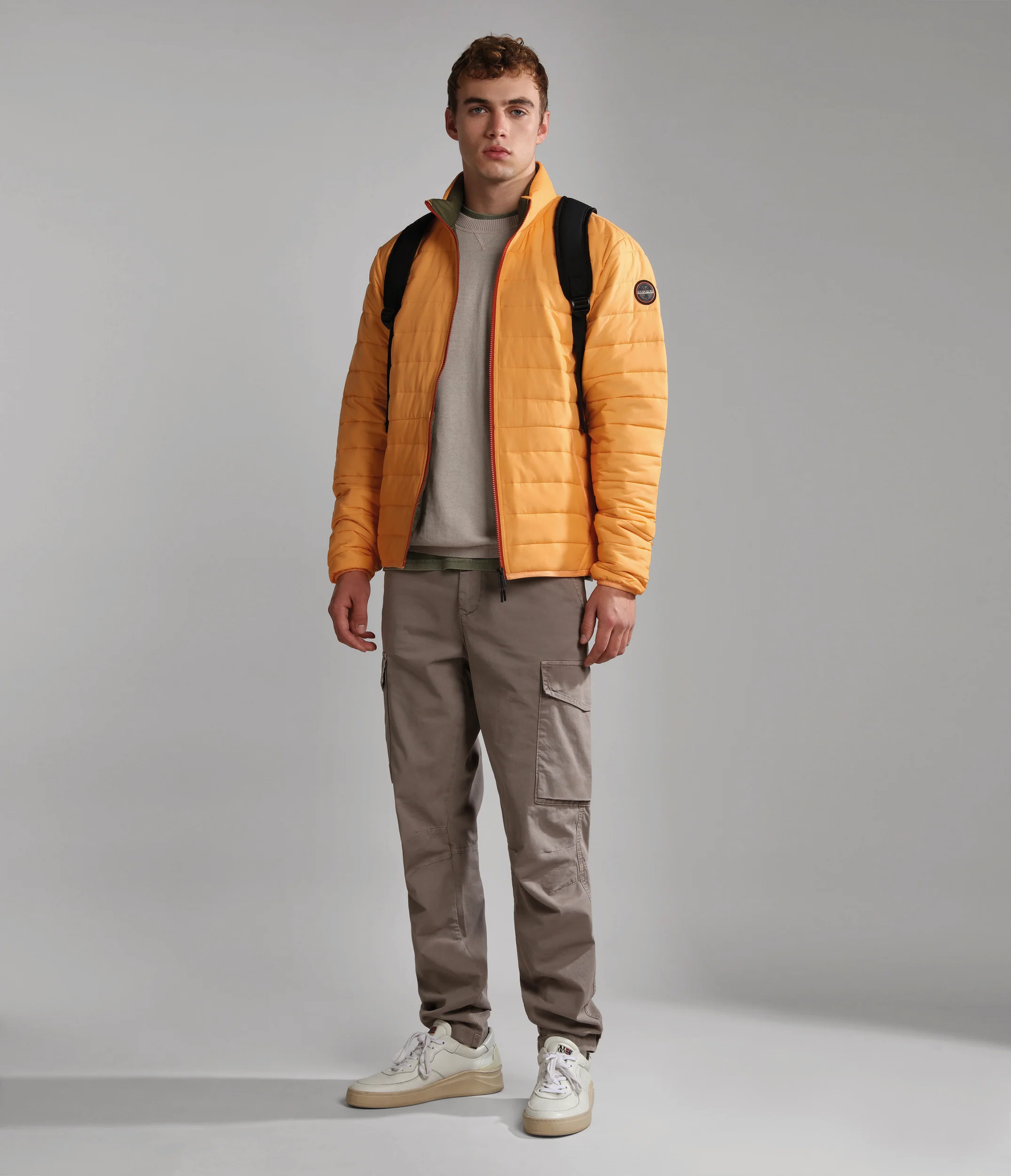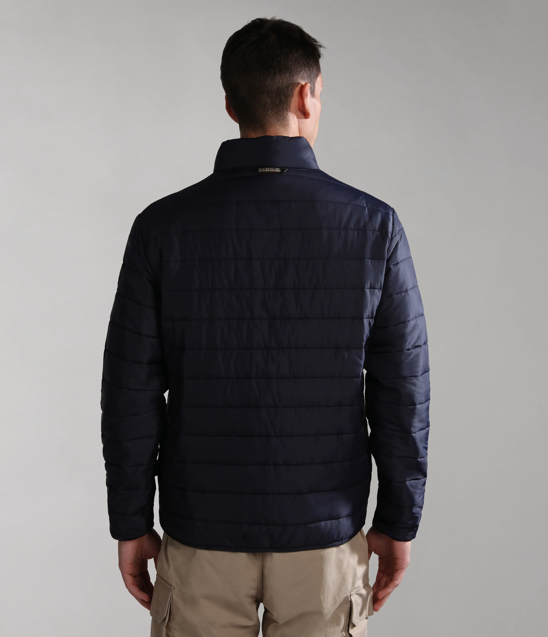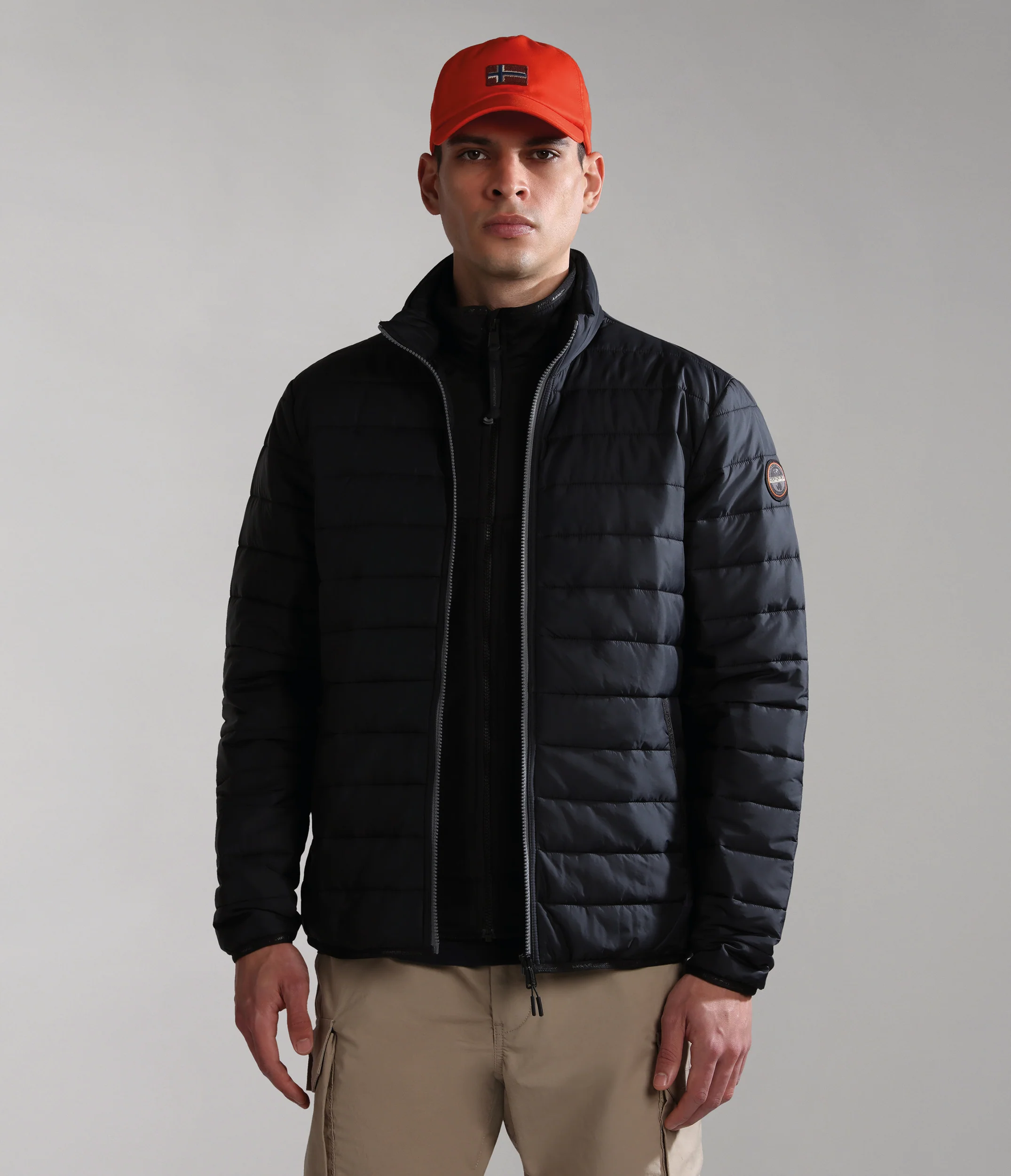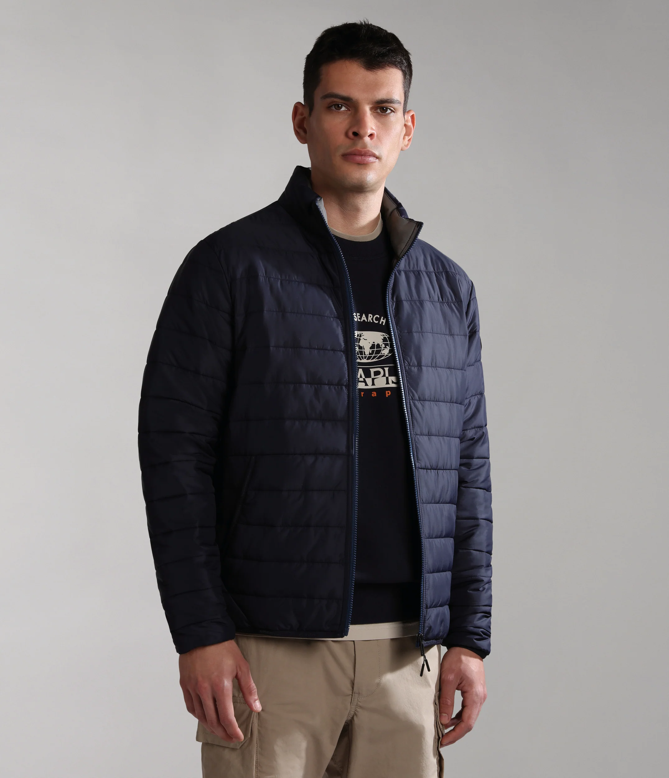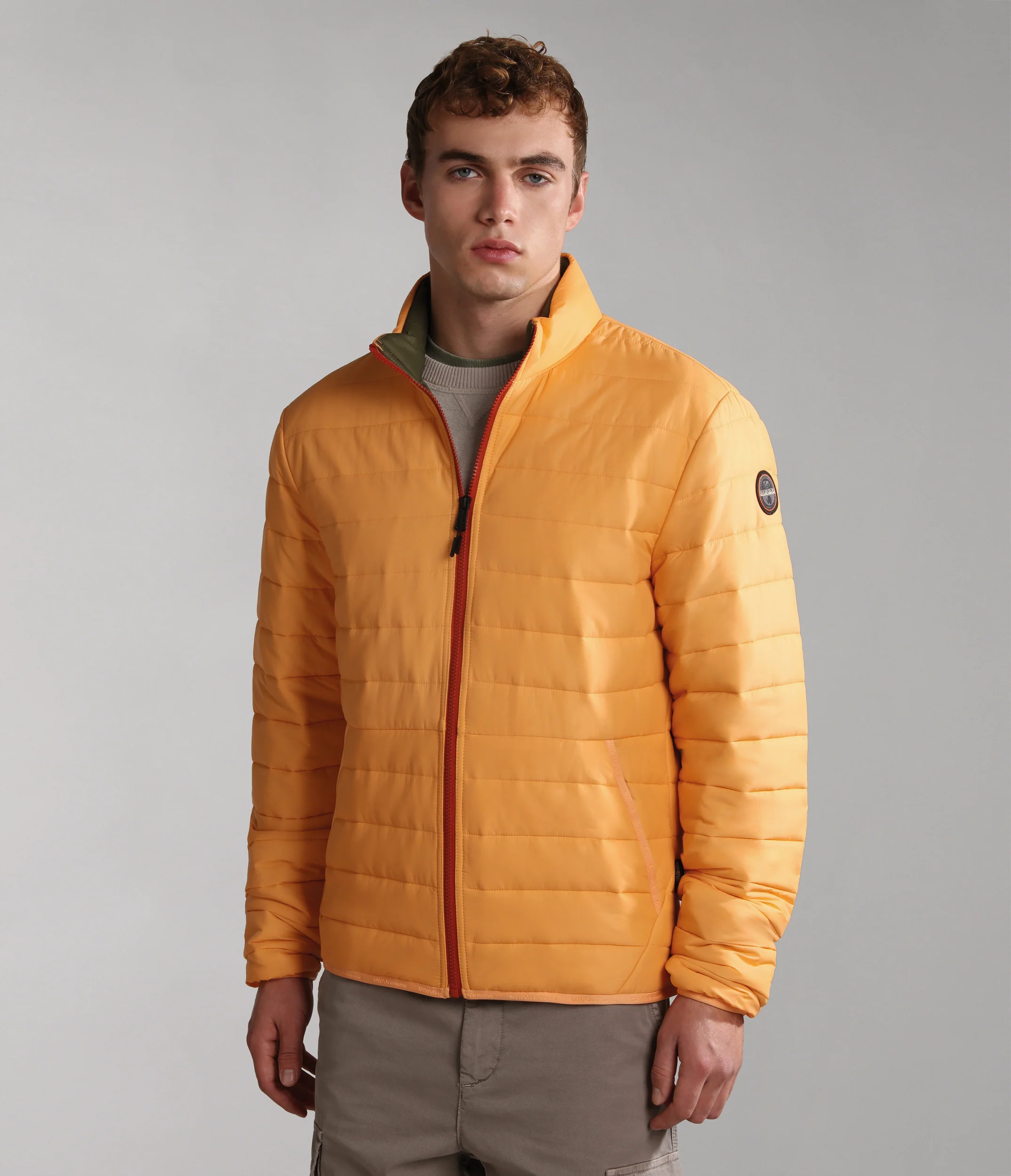 100% poliammide. Presenta imbottitura down-free riciclata isolante, leggera ma calda. Con chiusura con zip a tutta lunghezza e collo alto.