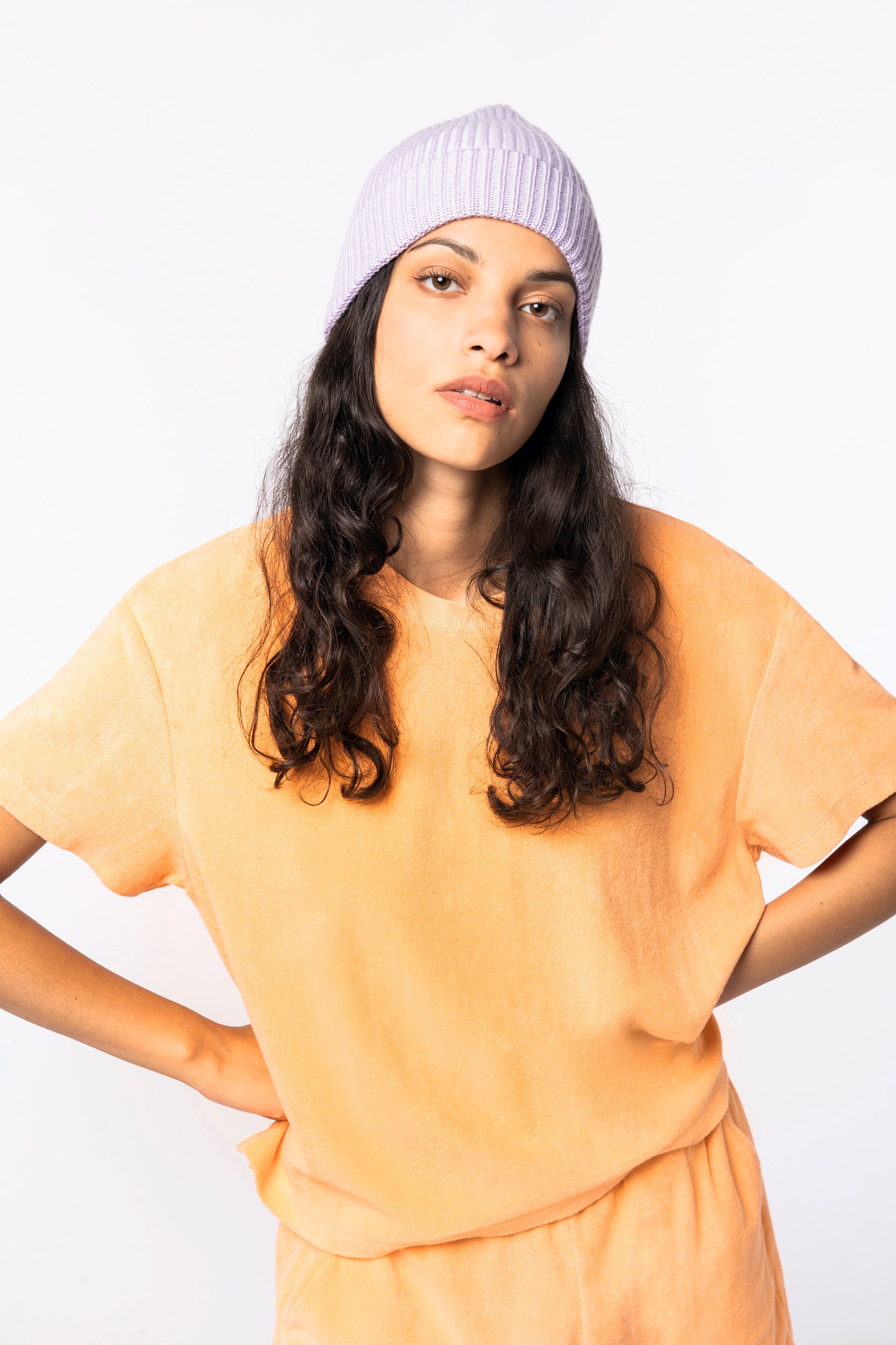 80% cotone biologico / 20% poliestere riciclato post-consumer.