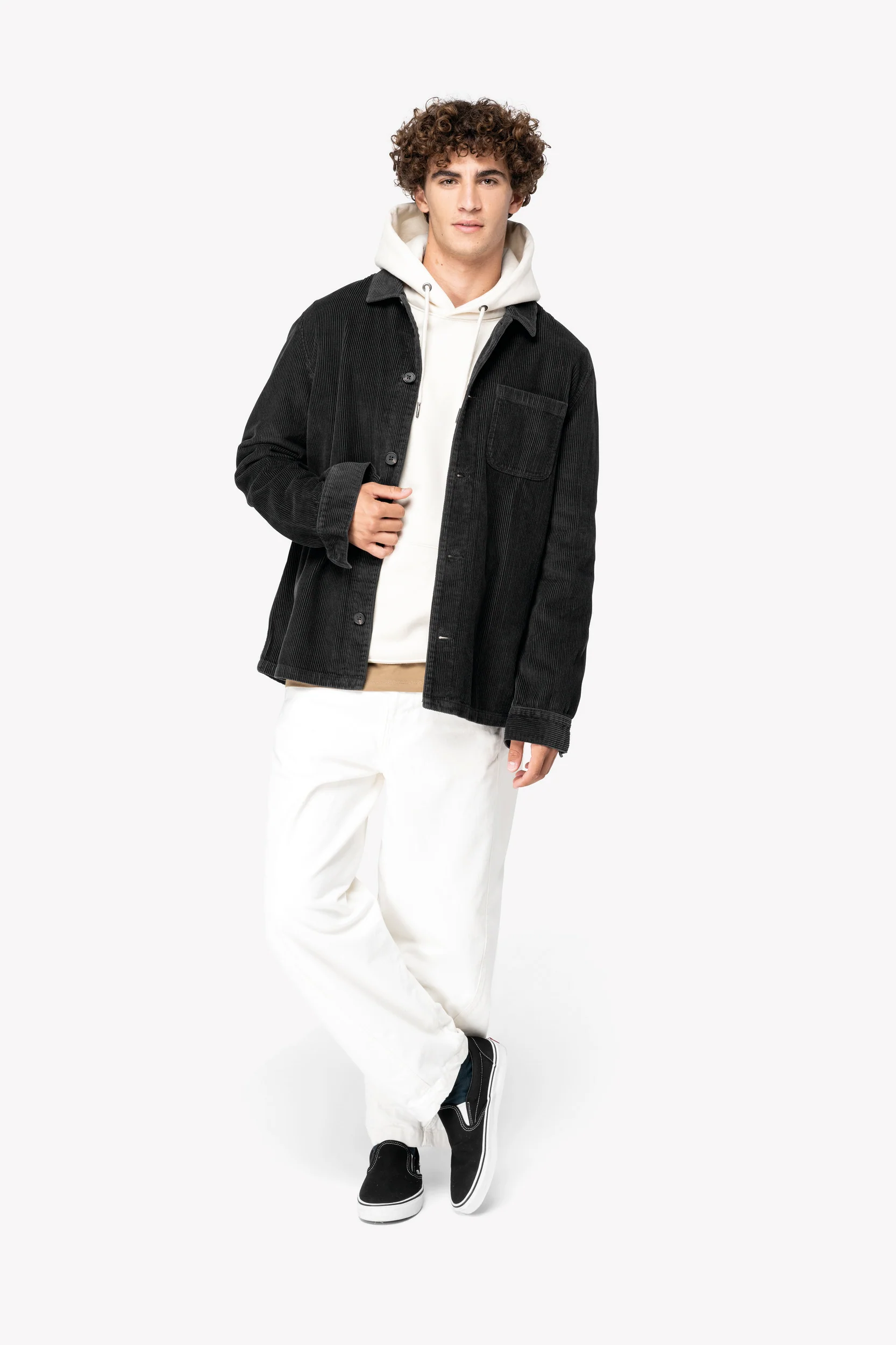 100% cotone biologico. Taglio dritto. Giacca in velluto a costine 1 x 1 con taschino sul petto applicato lato cuore. Pattina con bottoni in plastica riciclata. Fondo manica polsino con spacchetto e bottone in plastica riciclata. Collo con listino fantasia. Asola interna nel tessuto principale per appendere il capo. Inserti sulla schiena. Patch interna di personalizzazione. Capo tinto dopo la confezione: i colori possono variare leggermente da un capo all’altro. Il prodotto potrebbe stingere a contatto con superfici o capi chiari.