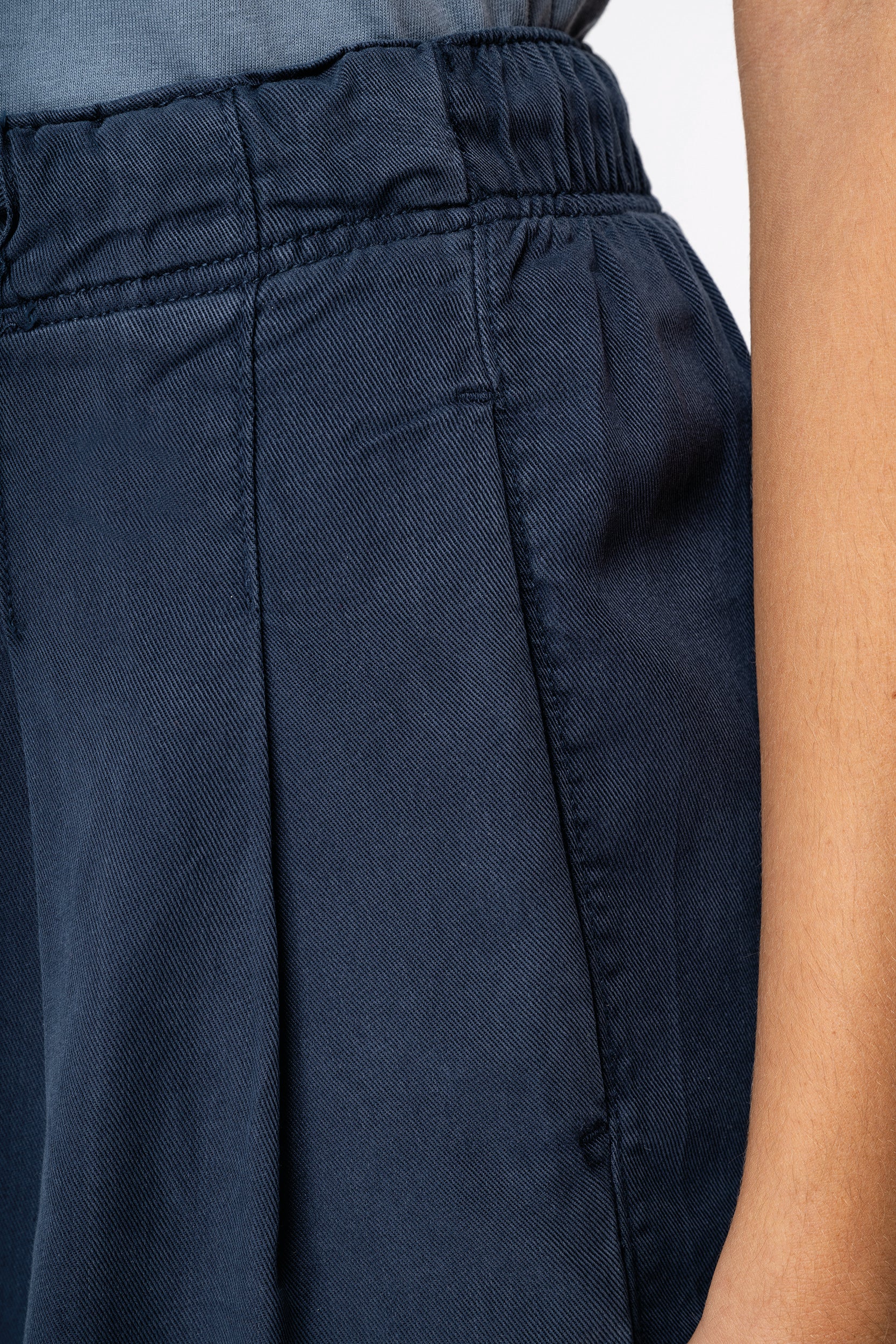 100% Lyocell TENCEL™ * . * TENCEL™ è un marchio di Lenzing AG. Taglio leggermente svasato. Girovita elasticizzato sul retro per un maggior comfort. Due tasche a filetto posteriori con angoli rinforzati. Due tasche laterali. Nervature cucite a forca davanti, dietro, sui lati e sul cavallo. Due pince anteriori. Tinto in capo dopo il montaggio: i colori possono variare tra un prodotto e l’altro. A contatto con superfici o indumenti chiari potrebbero stingere.