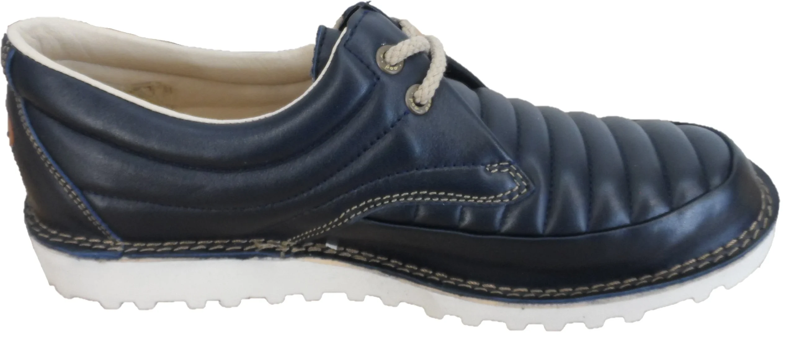 Real leather upper with quilted panel detail. Superb contrast stitch detail throughout, classic Pod Original branded tab detail and branding to heel. Authentic Pod Heritage two-row mudguard stitching, thick EVA sole and round wool lace detail. 2 eyelet fastening. Stunning and stand out men’s Retro Mod footwear with an undoubted Indie edge.