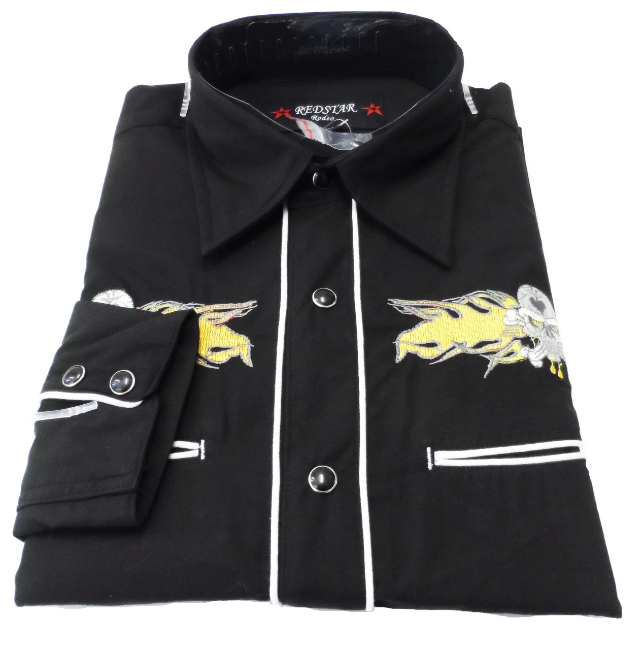 Redstar Rodeo Black Yellow Rockabilly Western Cowboy Vintage/Retro Shirts
