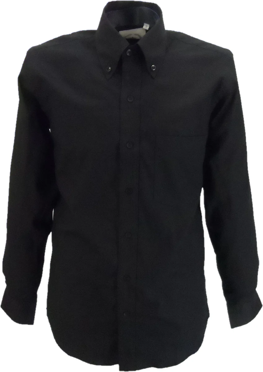 Relco Black Oxford Cotton Long Sleeved Retro Mod Button Down Shirts