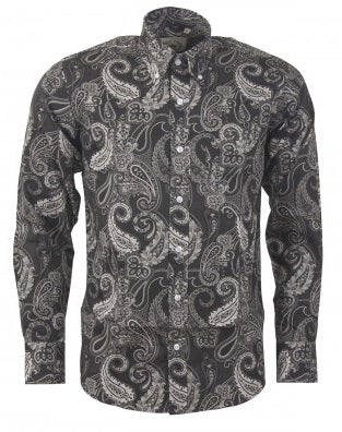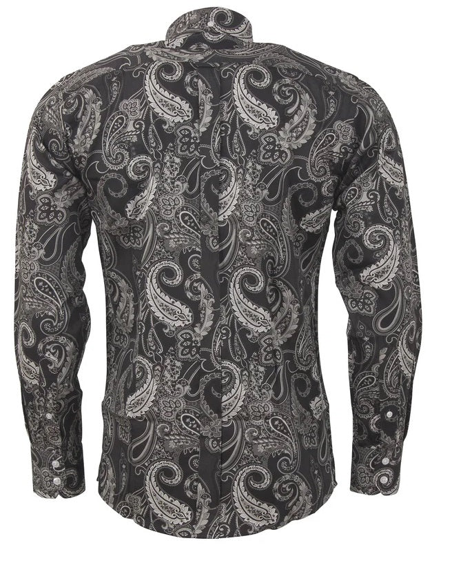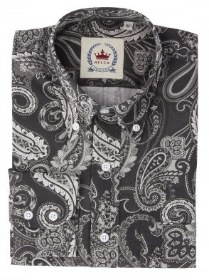 Relco Black Paisley 100% Cotton Long Sleeved Retro Mod Button Down Shirt