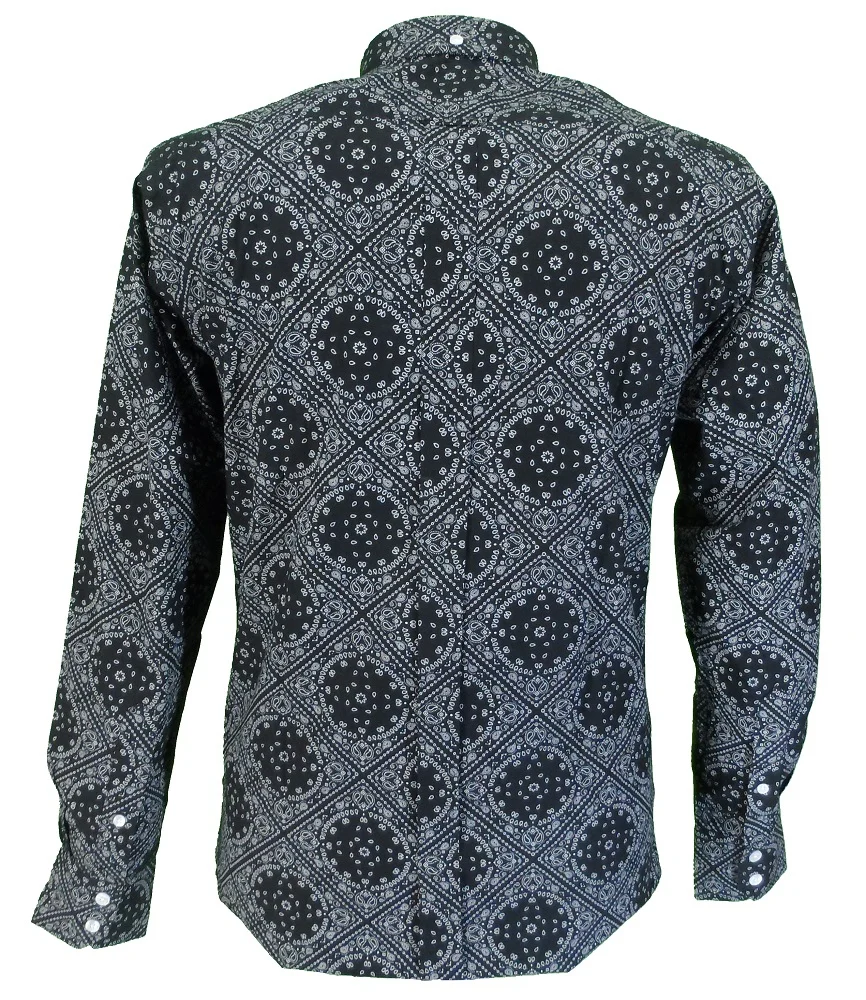 Relco Black & White Paisley 100% Cotton Long Sleeved Retro Mod Button Down Shirt