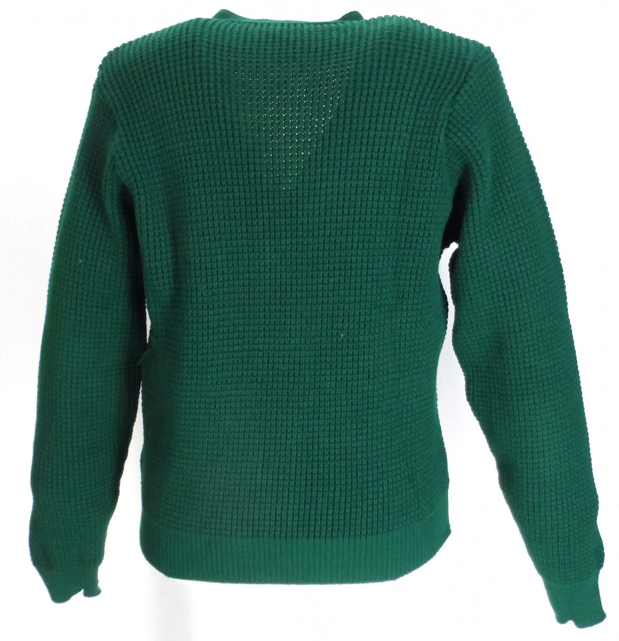 Vintage style waffle knit cardigan, heavy duty V fronted with brown football buttons. Ribbed neck, sleeves and hem, plain coloured in traditional waffle knit with 2 side pockets. 100% acrylic with a dry cotton feel.