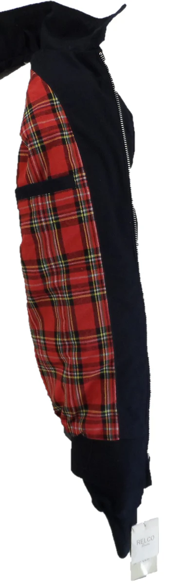 The Relco Harrington jacket is lined with a bold and contrasting red tartan and features an inside button pocket