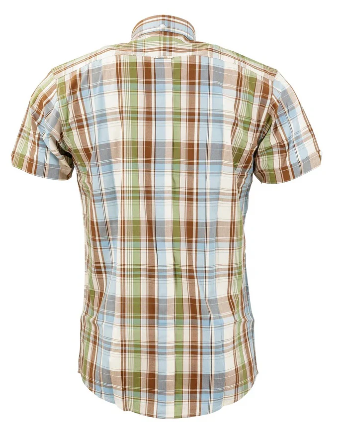 Ladies short-sleeved shirts made in cotton with a button-down collar and button trim on the sleeves.