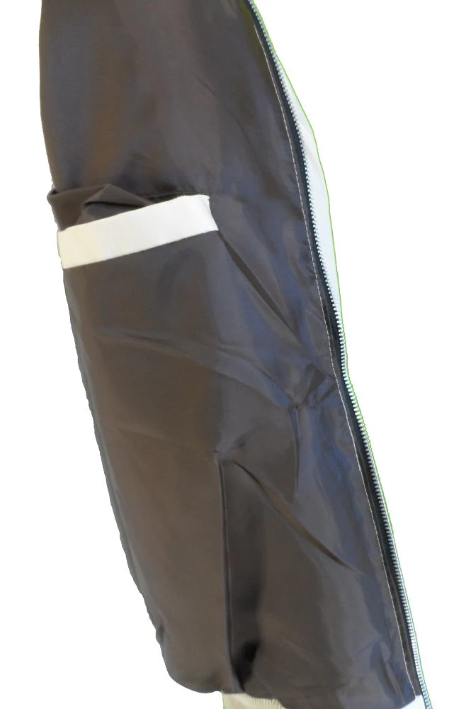 Classic retro design with YKK zips elasticated cuffs collar and waistband, the outer shell is 65% polyester and 35% cotton with a mixed fibre lining.