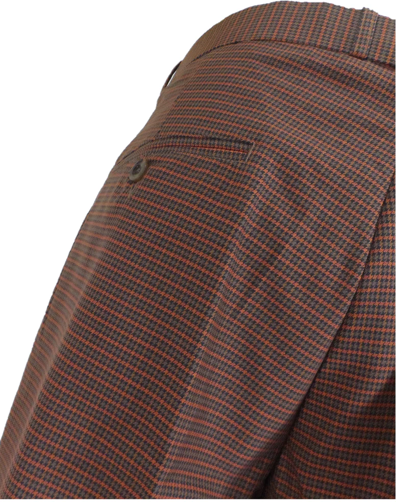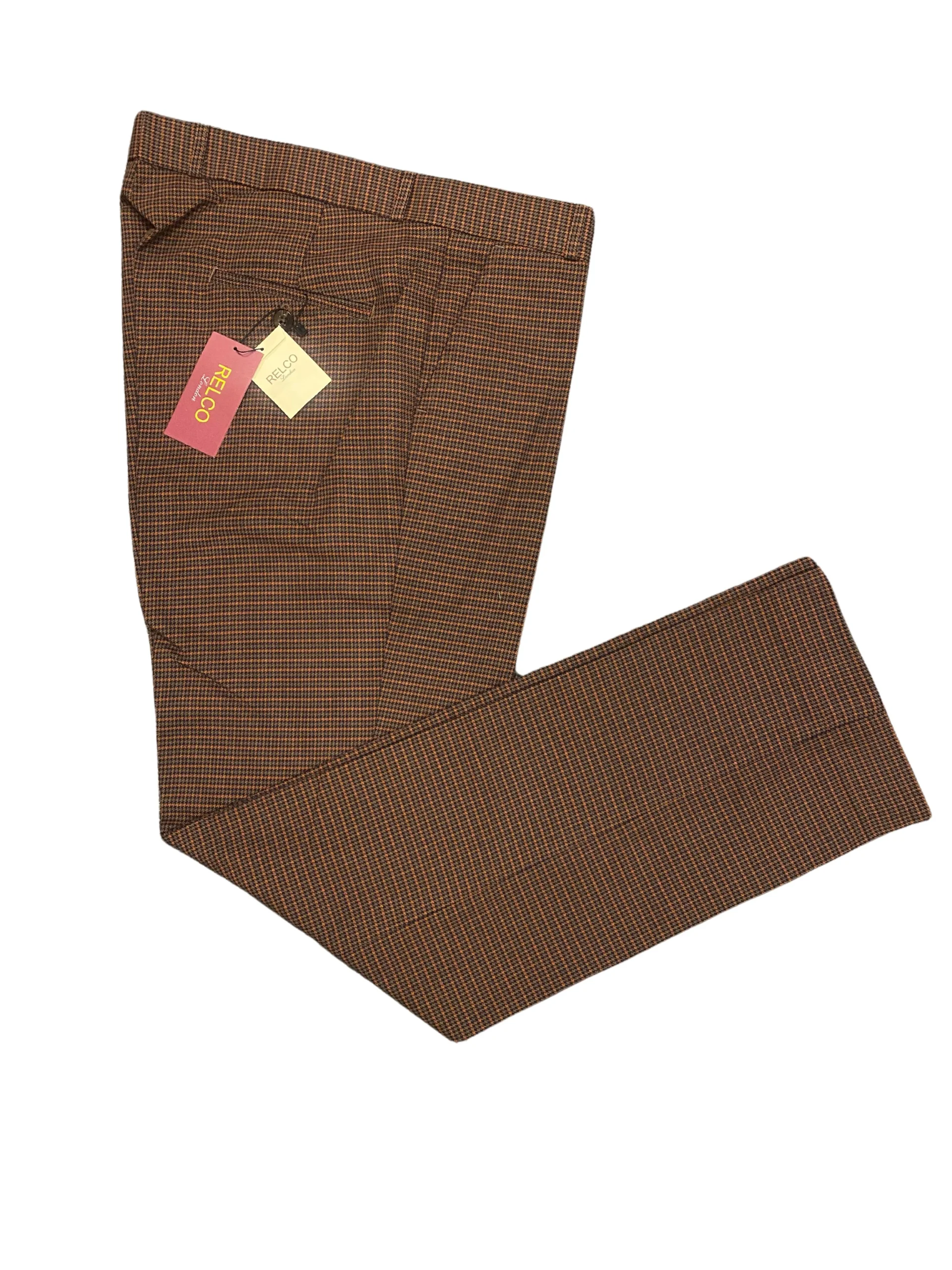 Relco Mens Brown Tartan Retro Sta Press Trousers