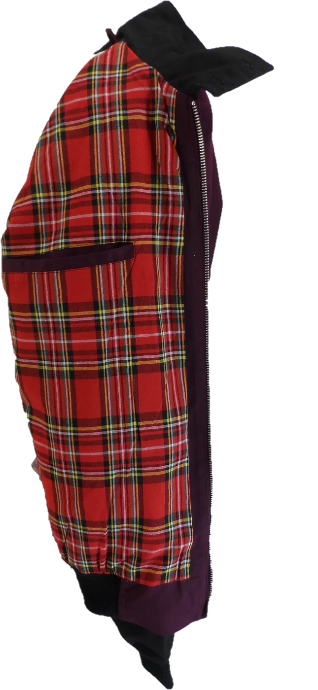 Lightweight cotton red tartan lining , double button collar, metal zip elasticated cuffs, flap style button pocket and wavey seam on back shoulder exactly like the originals.