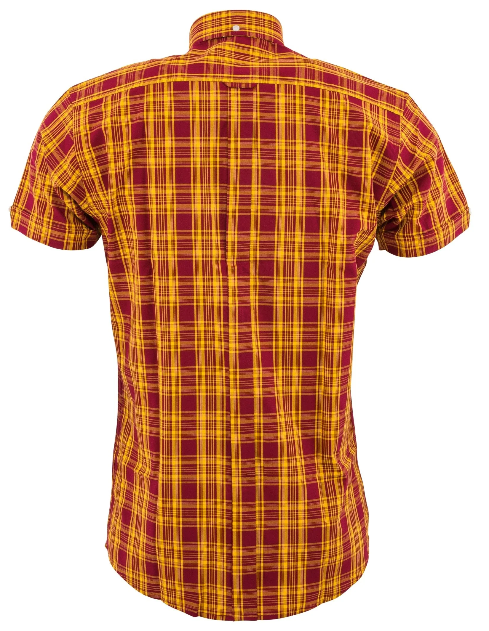 Relco Mens Burgundy & Mustard Checked Short Sleeved Button Down Shirts
