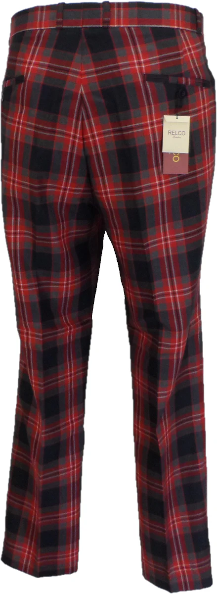 Relco Mens Grey and Red Tartan Vintage Sta Press Trousers