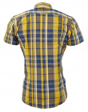 Relco Mens Mustard and Navy Checked Short Sleeved Button Down Shirts