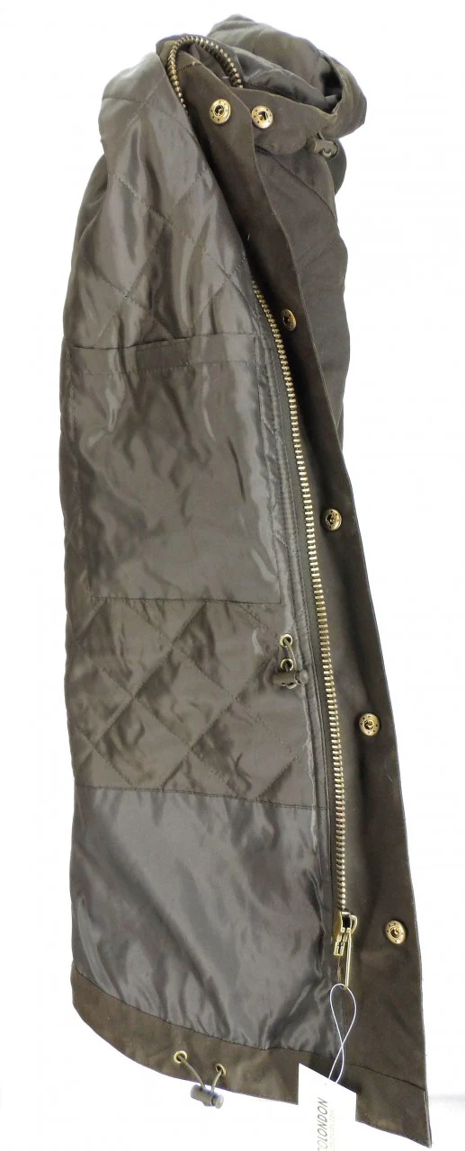 Military-inspired men’s waxed jacket with a traditional waxed cotton outer with top and bottom pockets popper and zipped fastening there is also double thick elbow patches and an exceptionally warm quilted Nylon lining with inner pocket