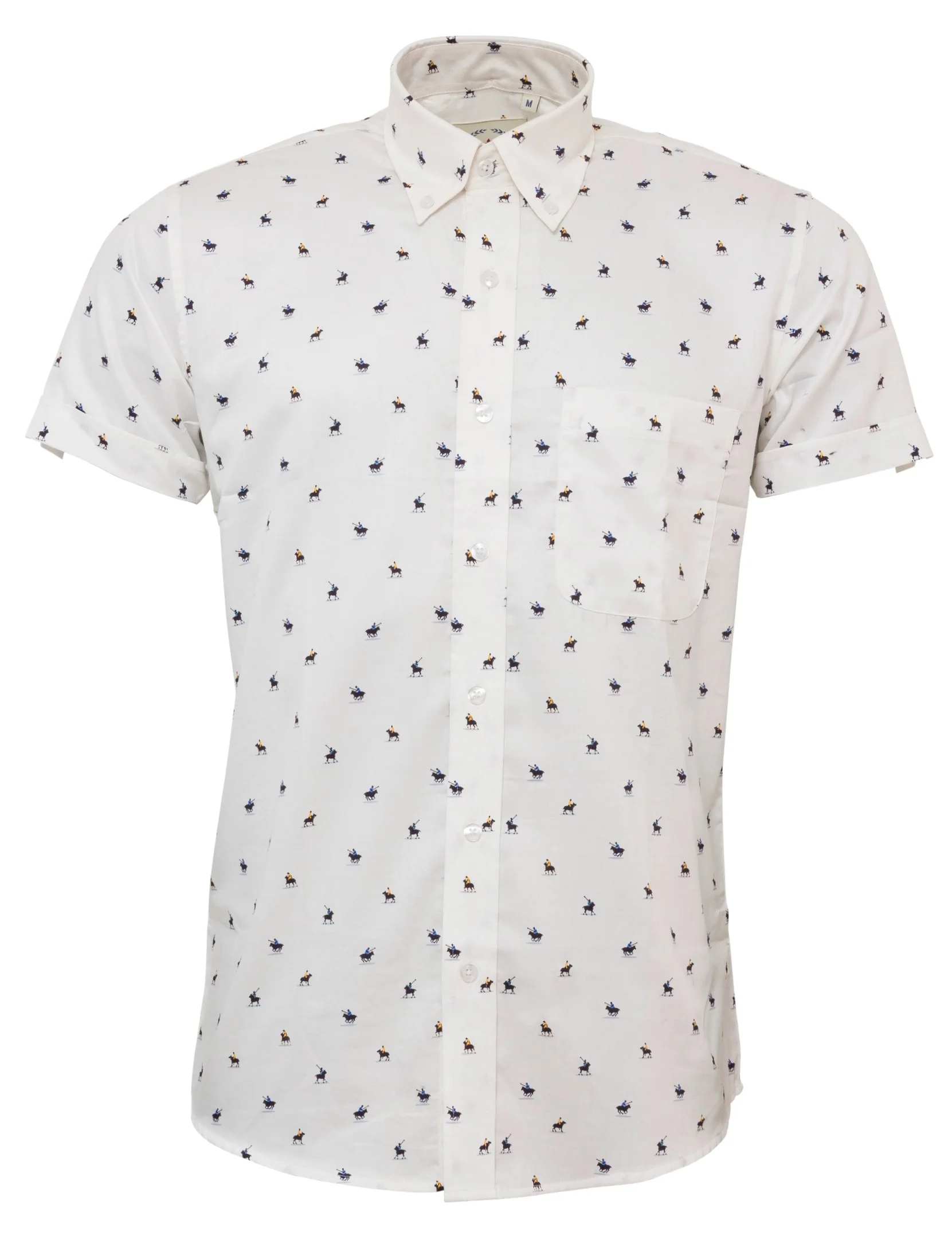 A classic vintage styled vintage button down shirt, mod-fit and with full back pleat, with front breast pocket.