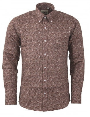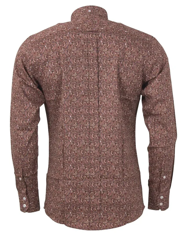 A classic vintage styled vintage button down shirt, mod-fit and with full back pleat, with front breast pocket. Explore our full range of men’s paisley shirts.