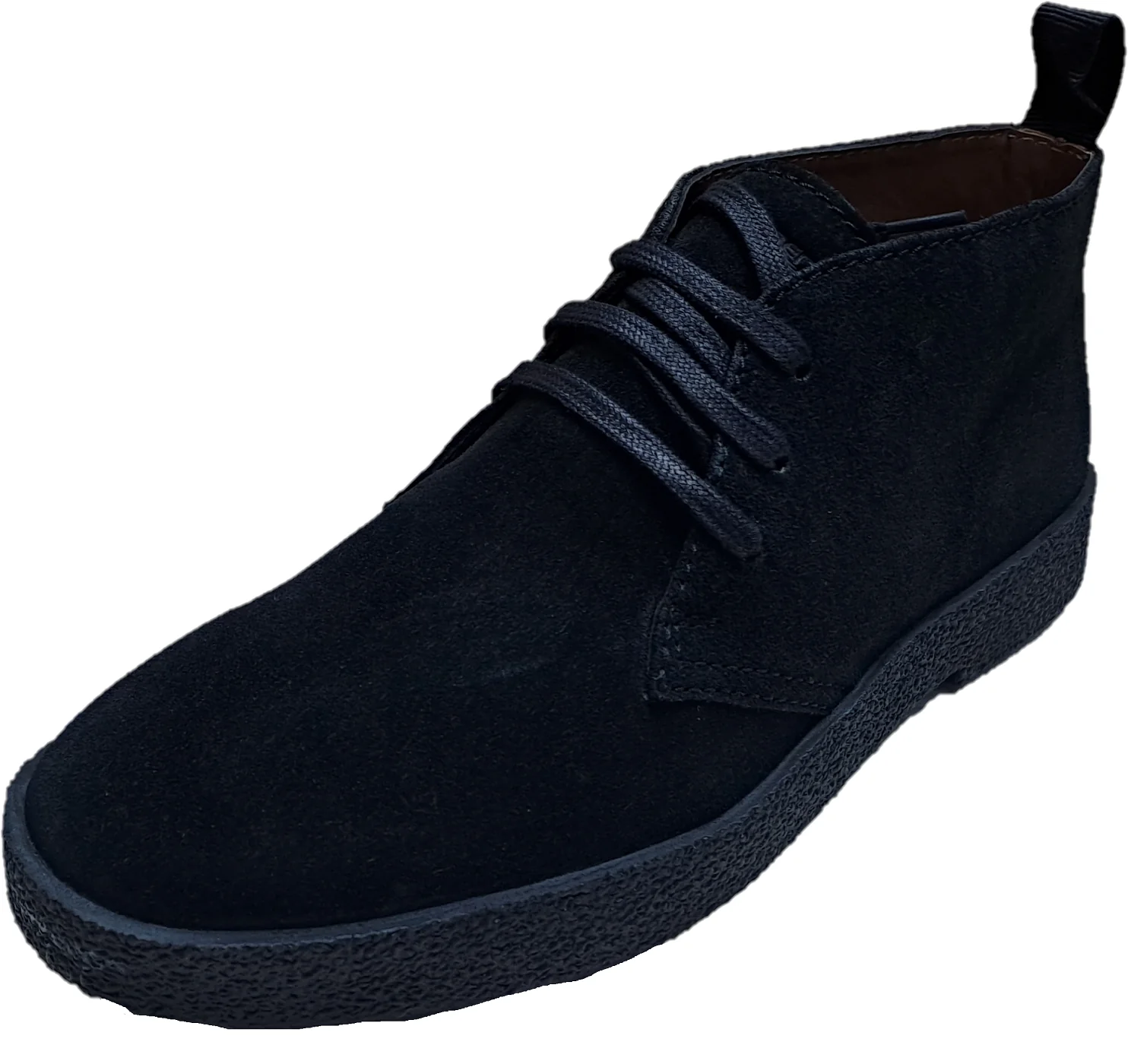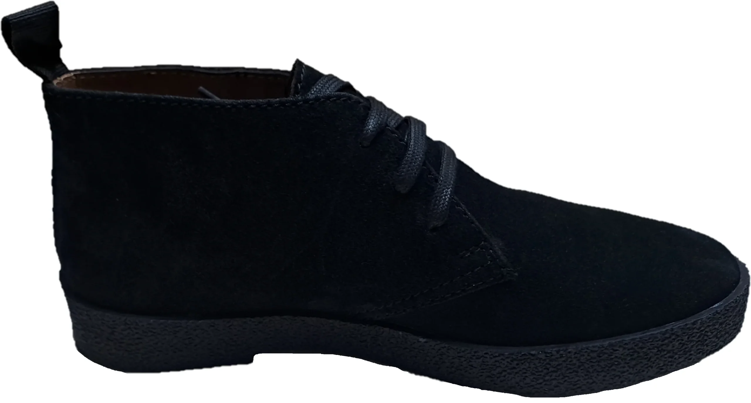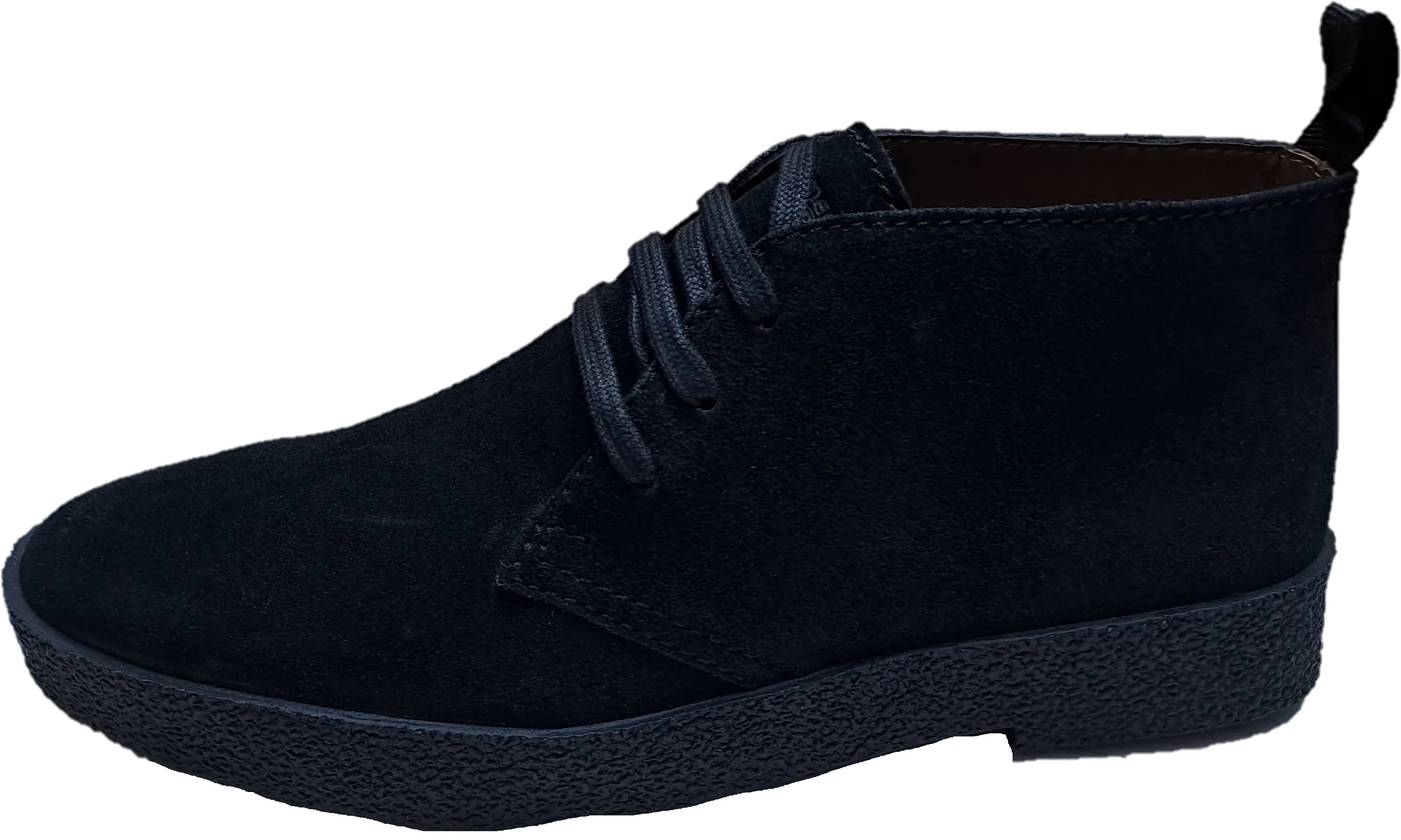 Real suede upper 3 eyelet lacing and a vulcanised rubber sole a textile and Pu lining