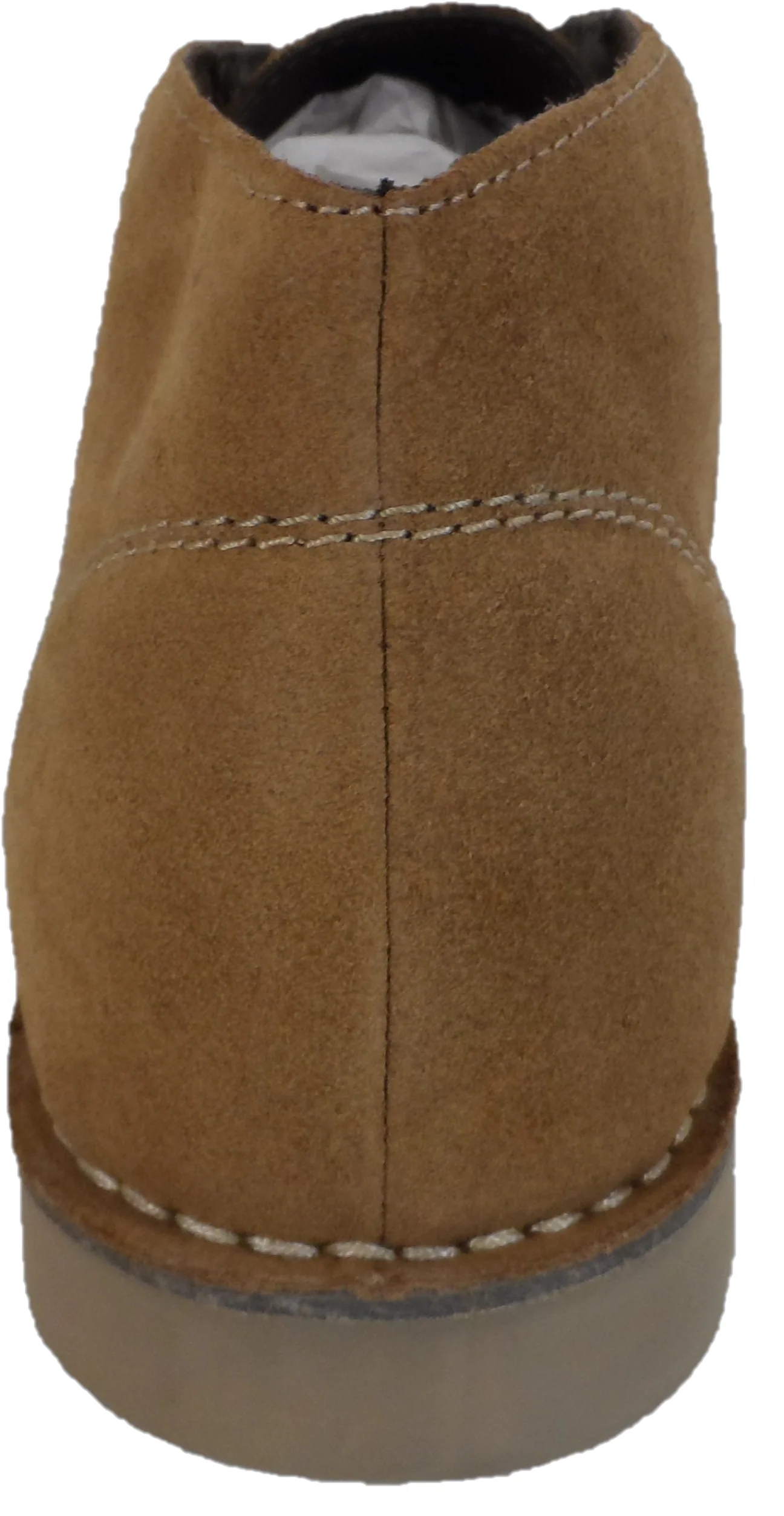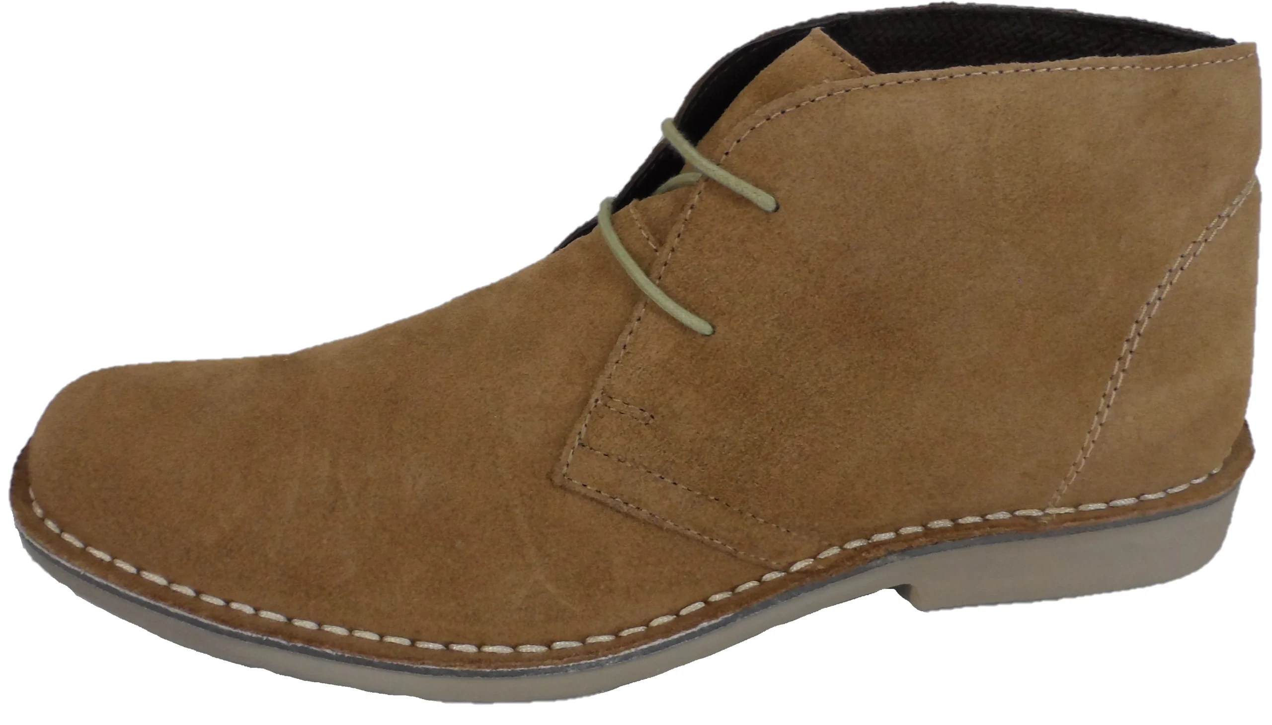 Real suede upper 2 eyelet lacing and a vulcanised rubber sole and a textile lining and a more pointed toe.