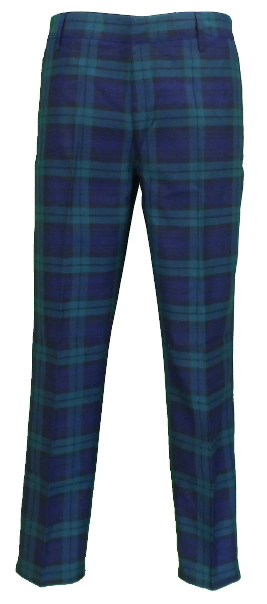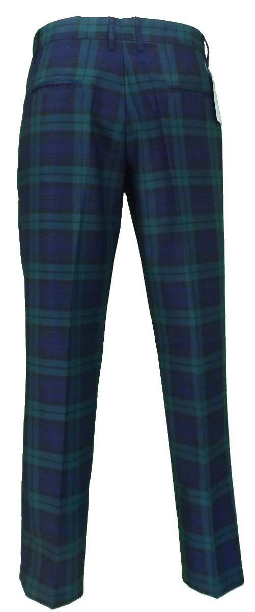 Run & Fly Mens 60s Vintage Retro Mod Checked Blackwatch Tartan Skinny Fit Trousers