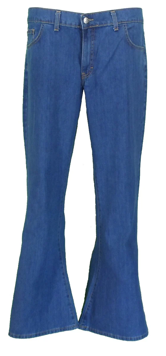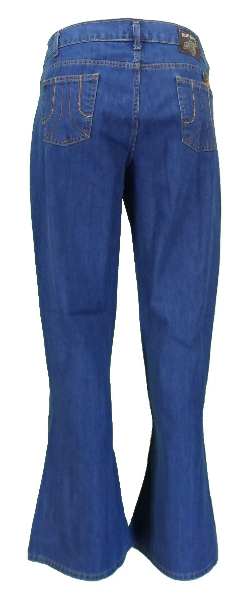 Run and Fly men’s flares are a mid rider 70’s cut 26″ flared hems, 100% cotton stonewashed denim, classic 5 pocket western style, zip flies with a back pocket design.