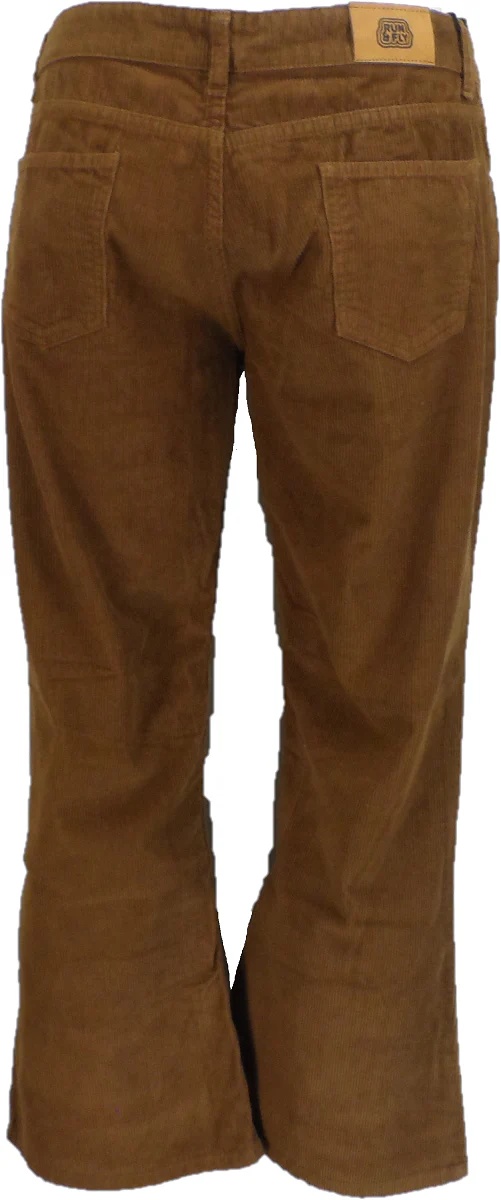 Run & Fly Mens Vintage 60s 70s Retro Tan Bootcut Flared Cords