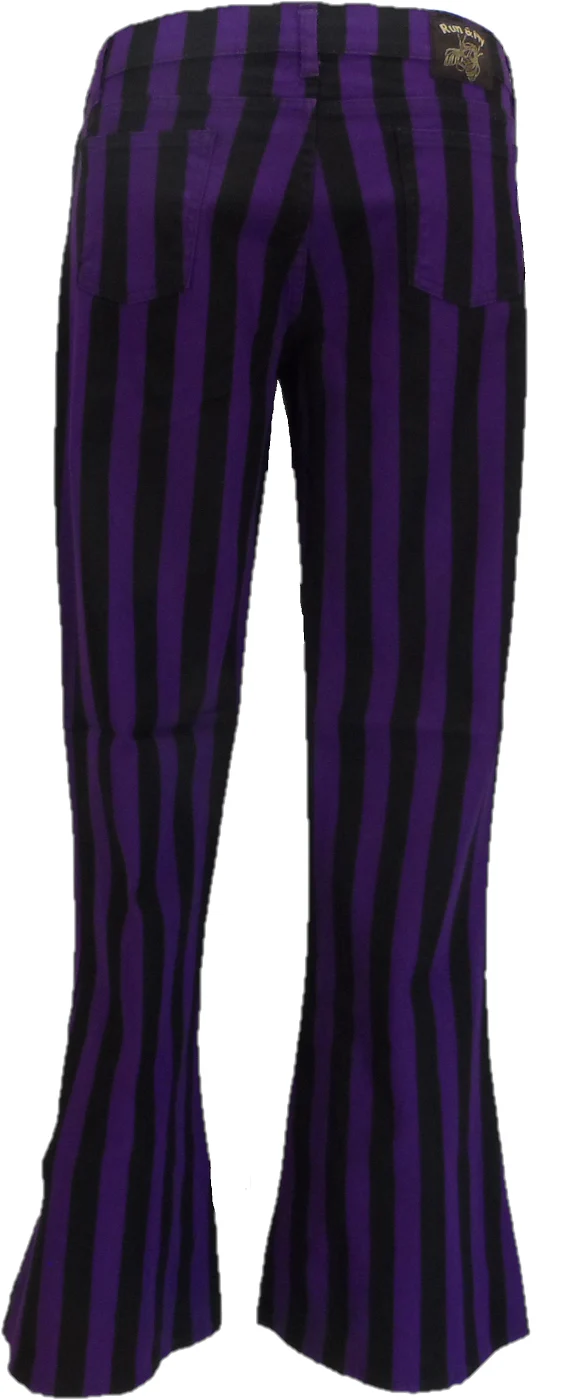 Run & Fly Mens Vintage Black/Purple Stripe Bell Bottom Super Flares