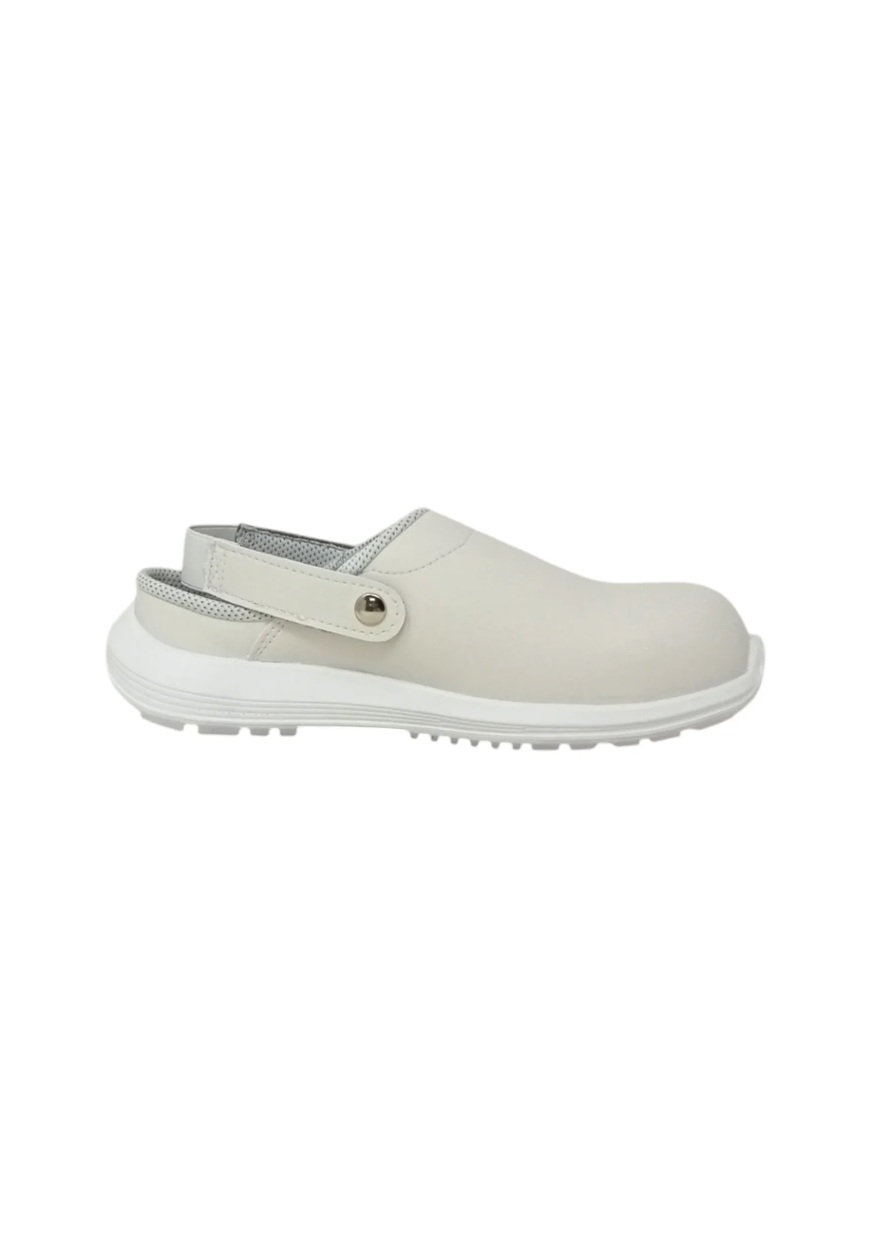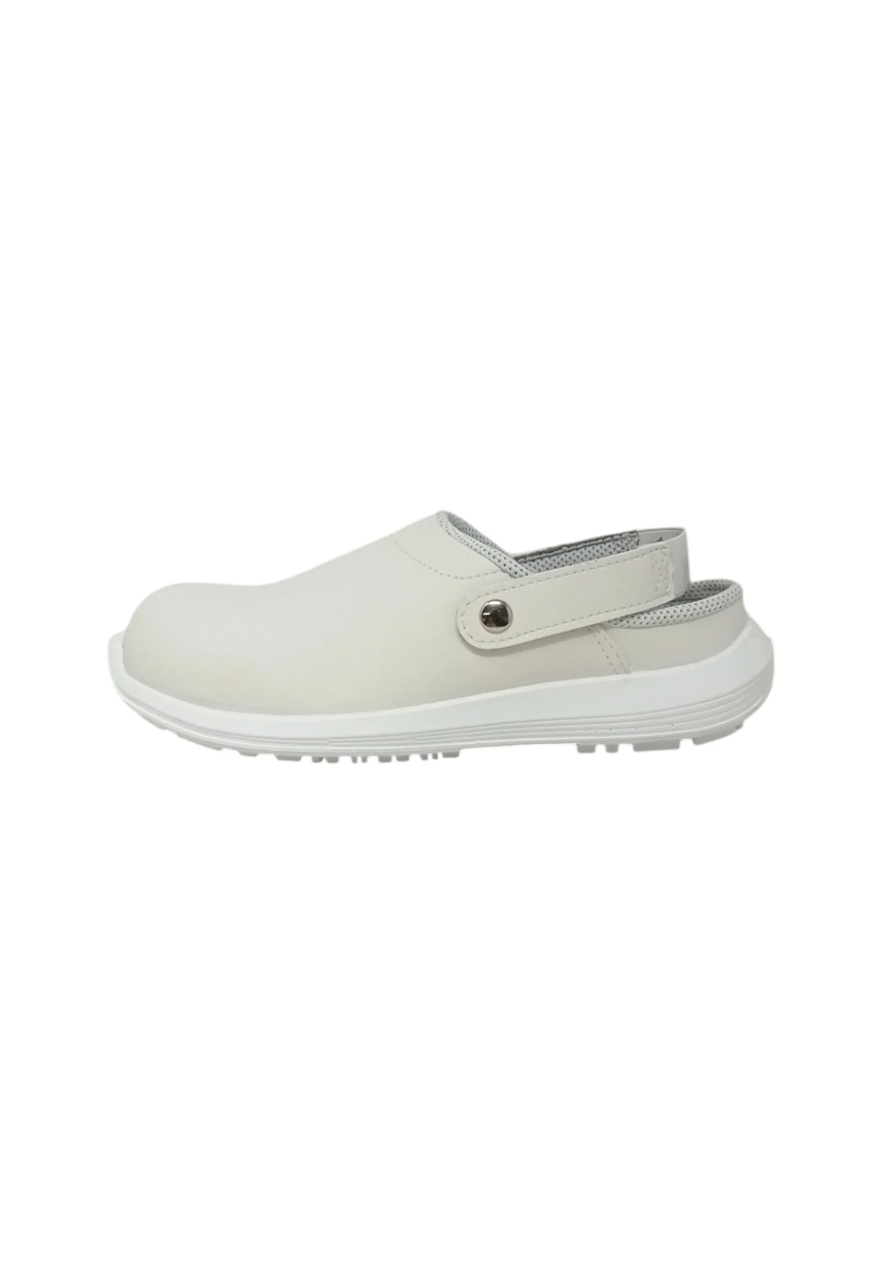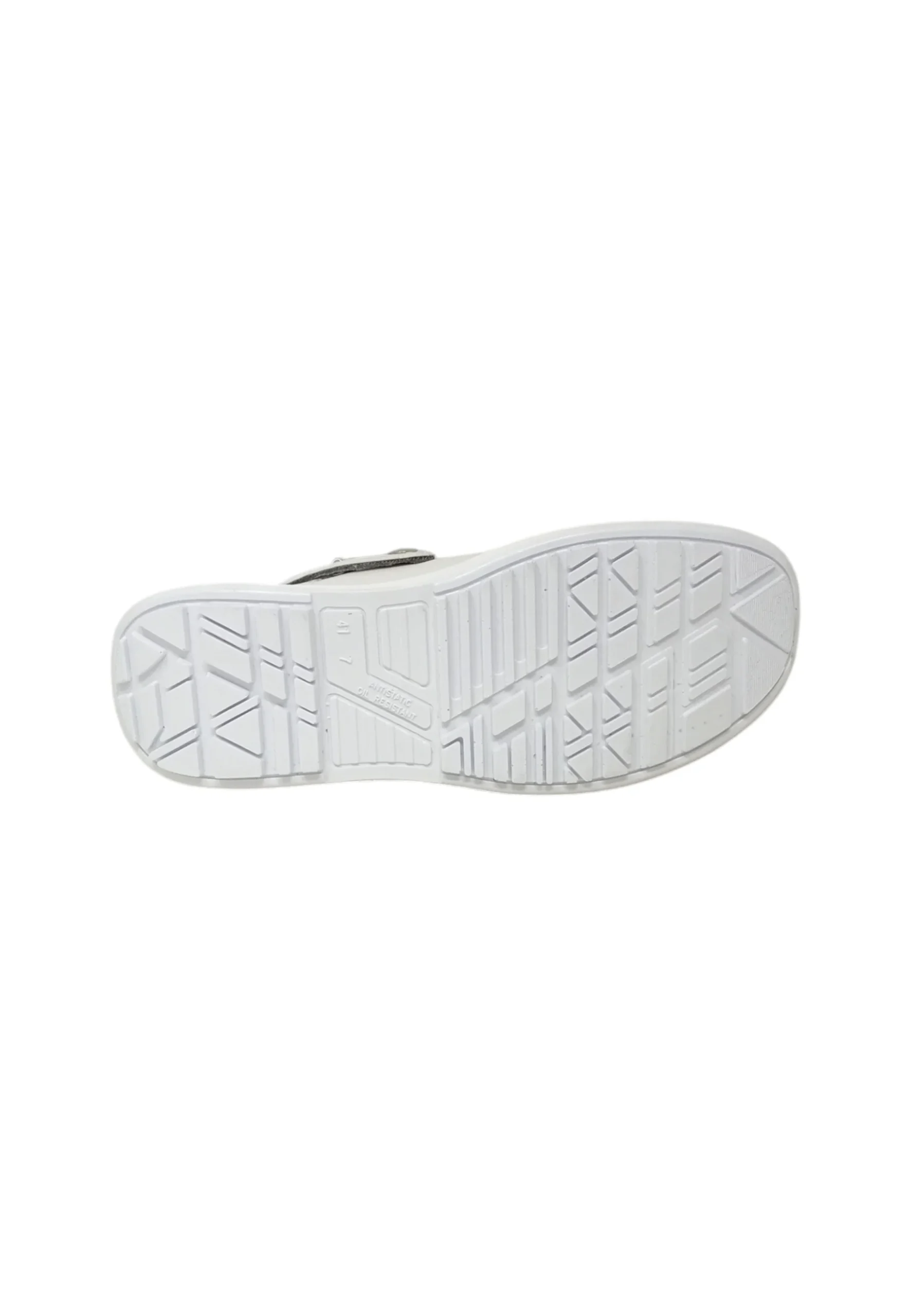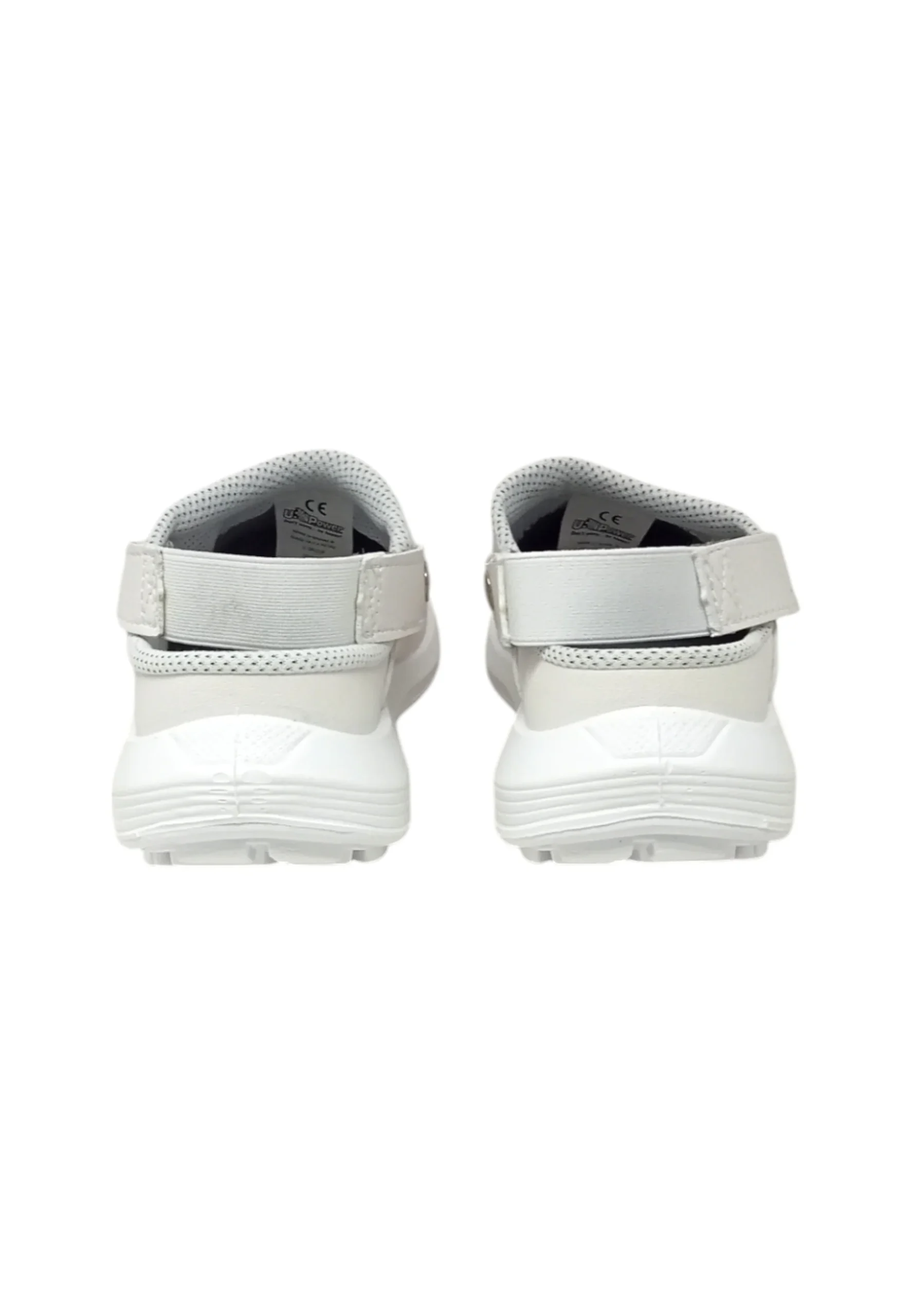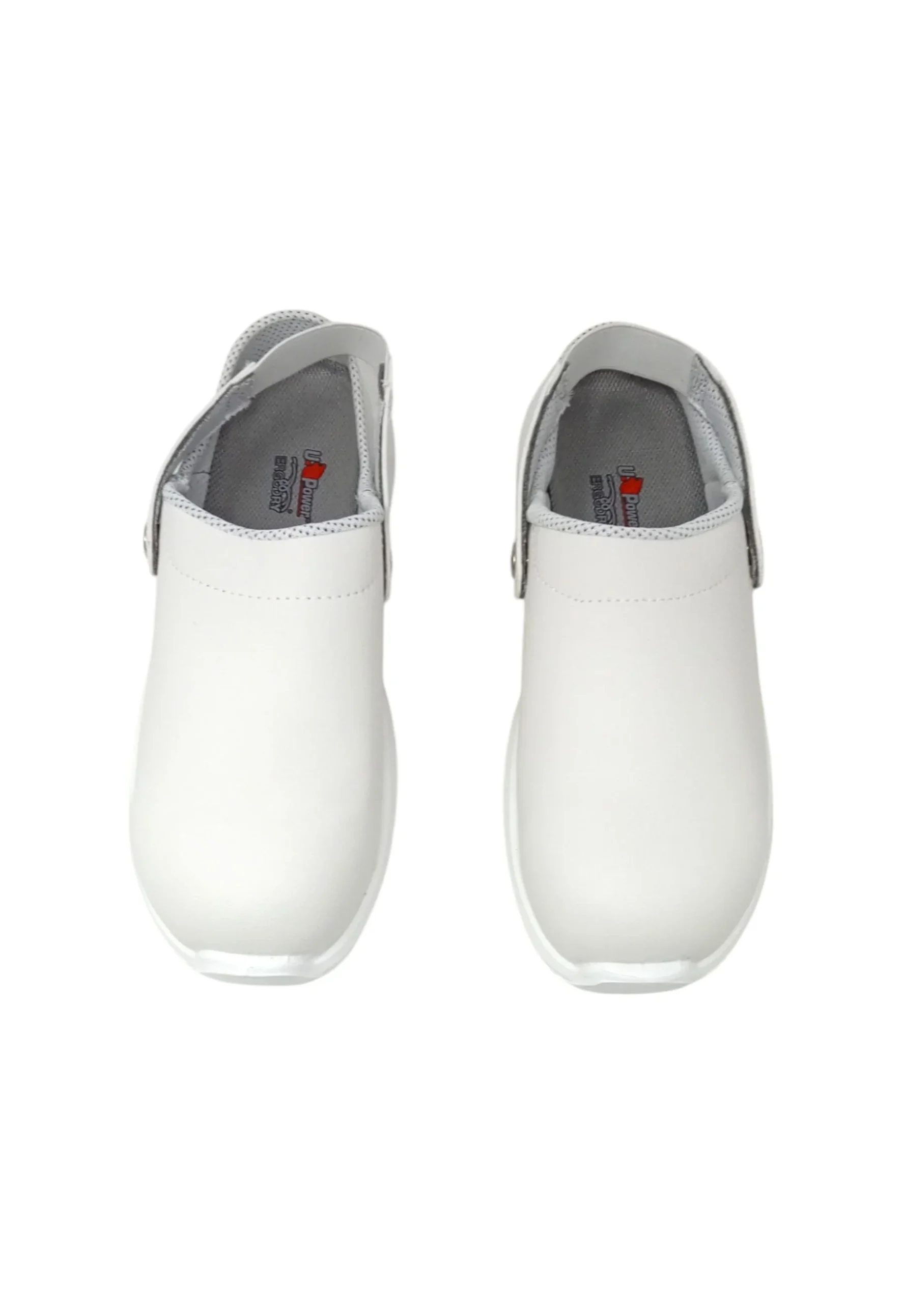 Scarpe antinfortunistiche bianche basse con cinturino, comode e leggere U-Power della linea White68&Black, con tomaia in microfibra Lucky, resistenti a batteri e residui organici chimici, facilmente lavabili, puntale AirToe Composite, antiscivolo e suola PU/PU U-Grip 68, SB-E-A-FO SRC
