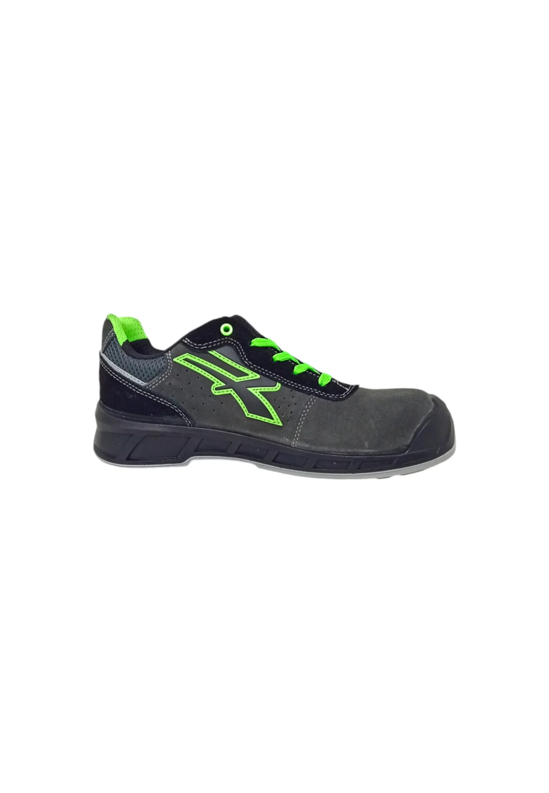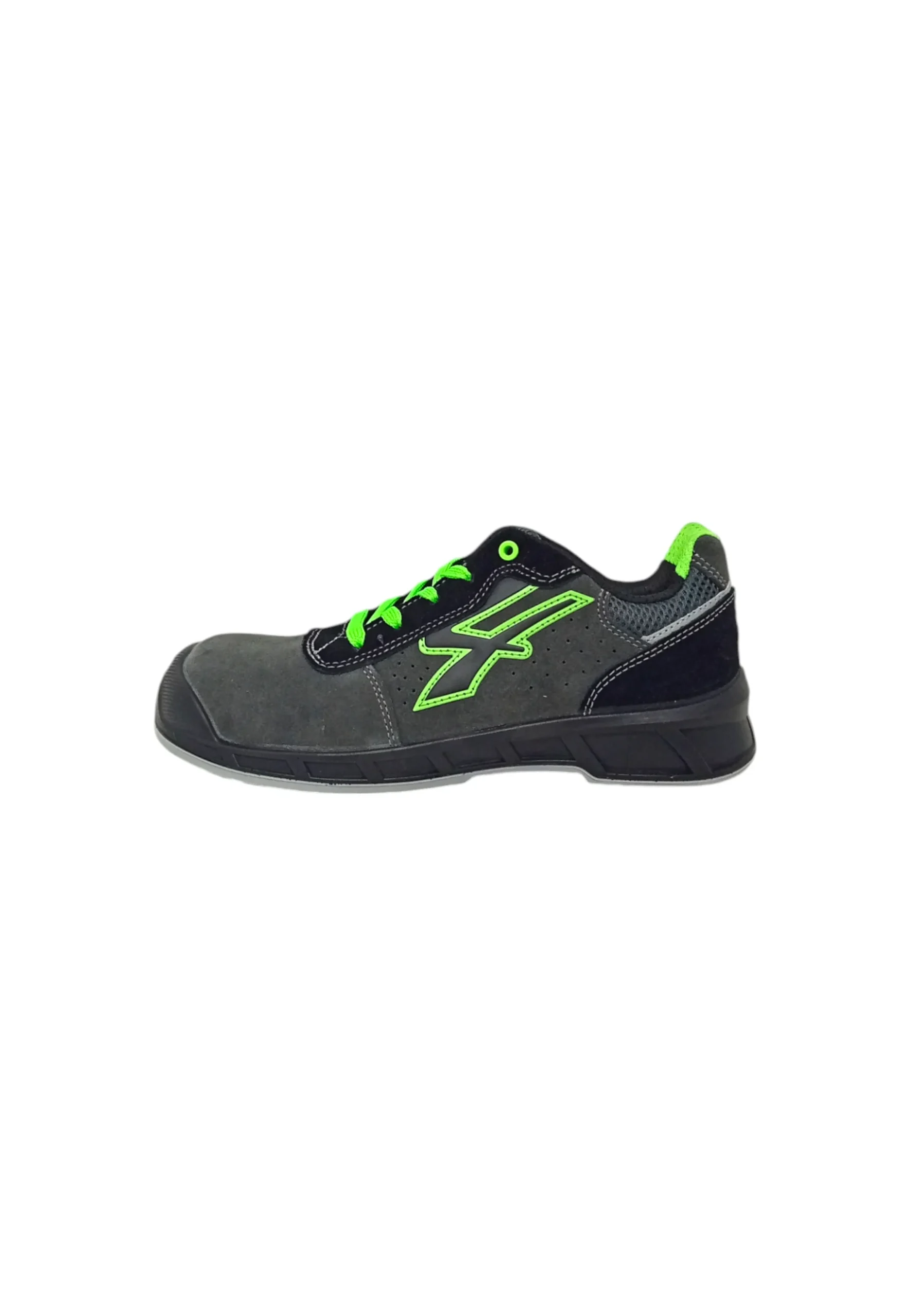 Scarpe antinfortunistiche traspiranti con tomaia in morbida pelle scamosciata forata e puntalino di rinforzo in poliuretano.