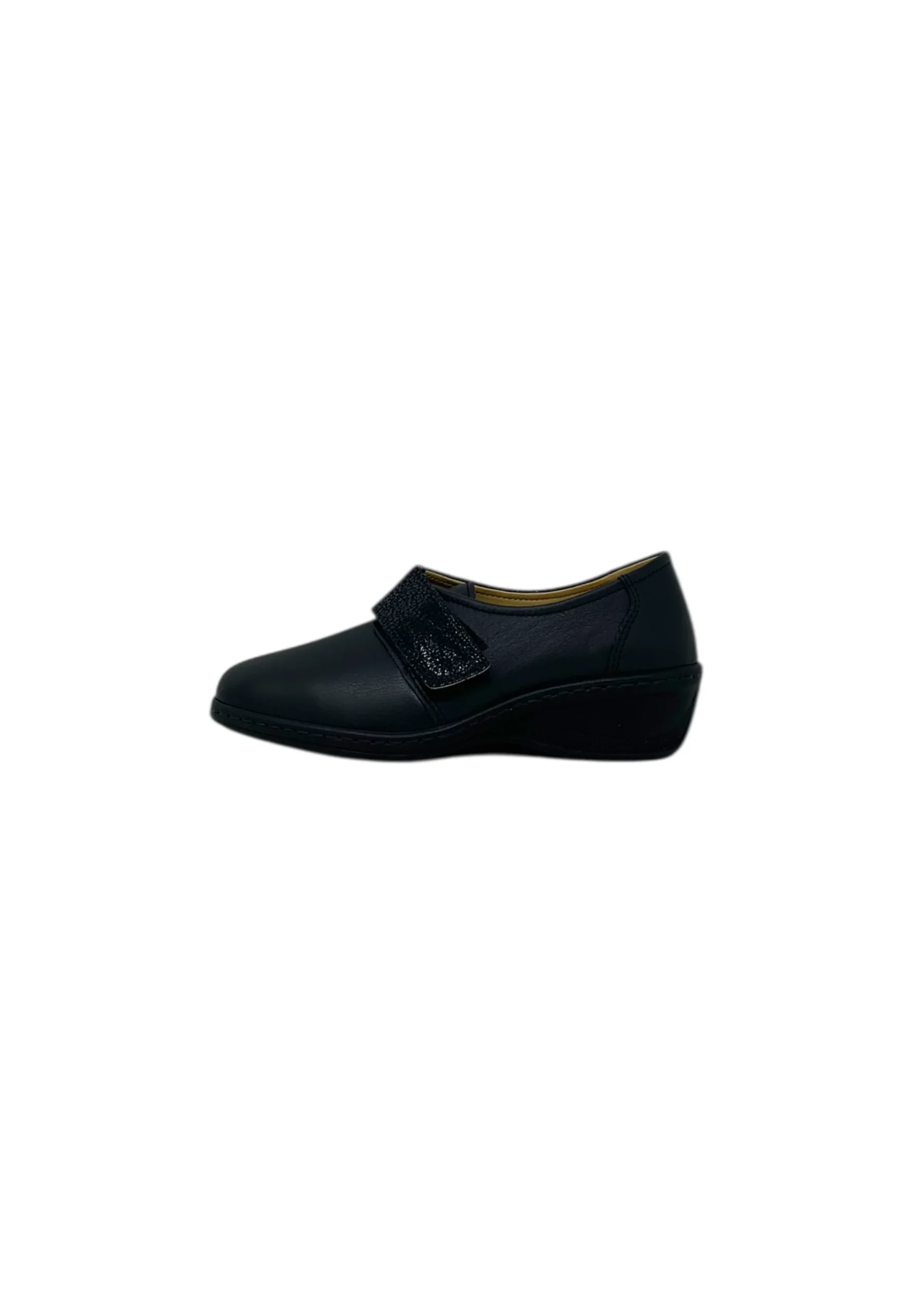 I mocassini sono caratterizzati da materiale esterno in pelle, materiale interno in tessuto, sottopiede in pelle, e suola in gomma antiscivolo con zeppa alta circa 4 cm. Inoltre, è prevista chiusura con strappo regolabile.