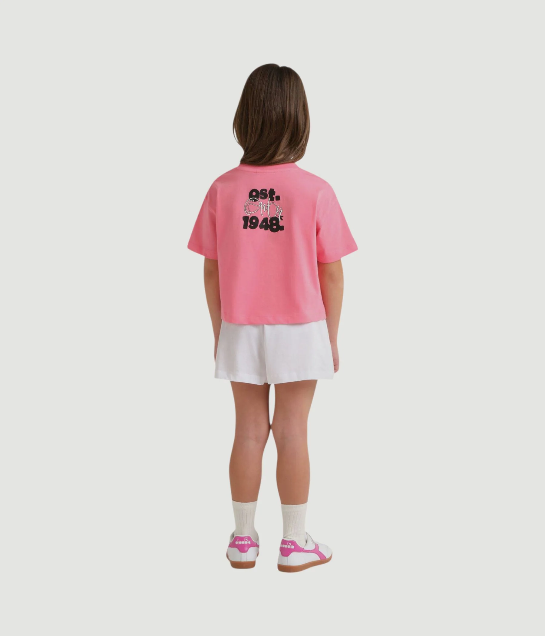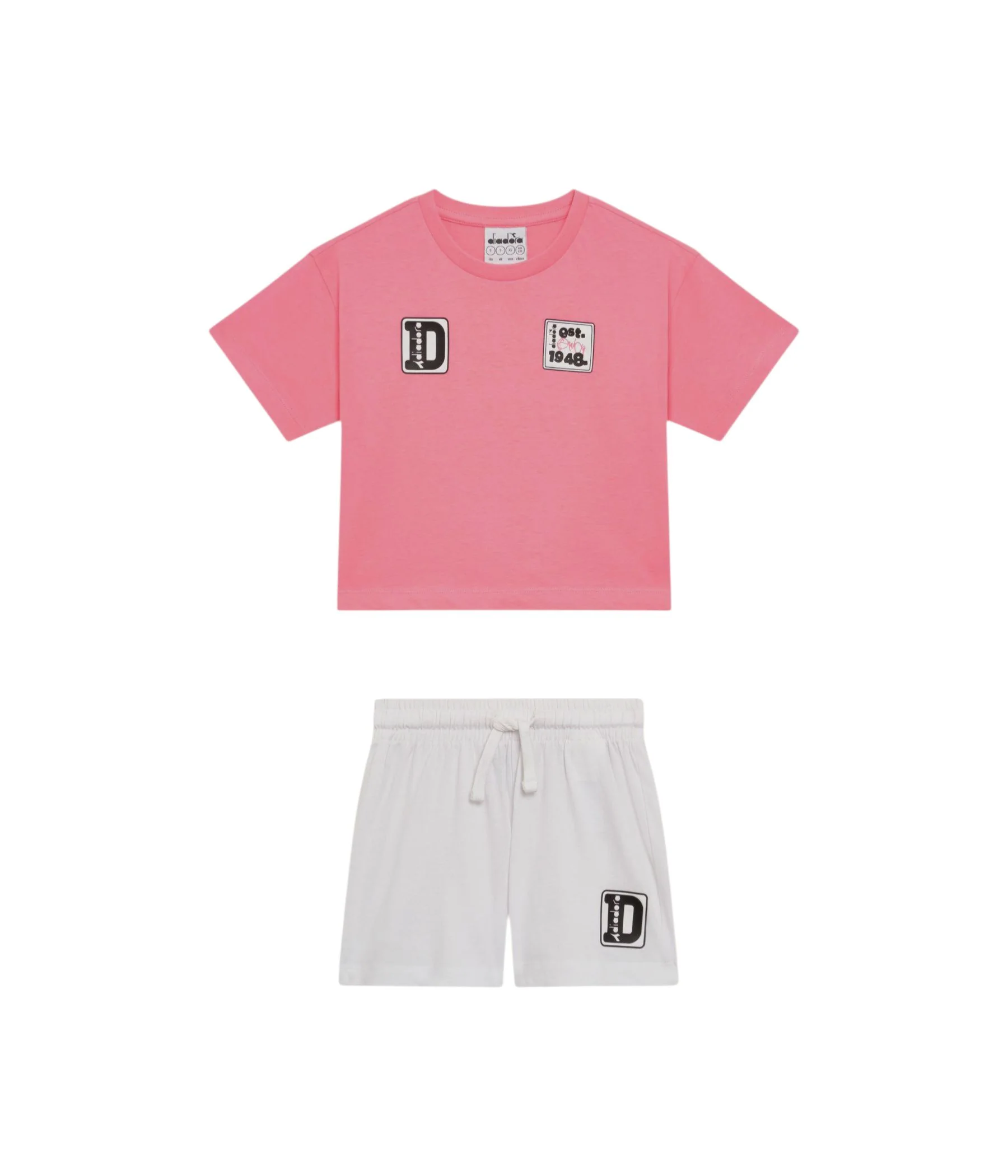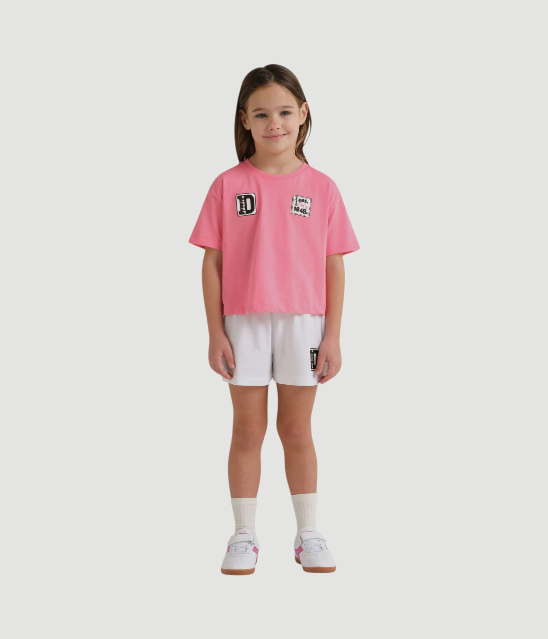Scopri questo set sportivo in morbido jersey di cotone, fresco dal fit comodo per correre, viaggiare, scendere in campo. Metti questo completo da bambina t-shirt e pantaloncini nello zaino e sei pronta a partire!