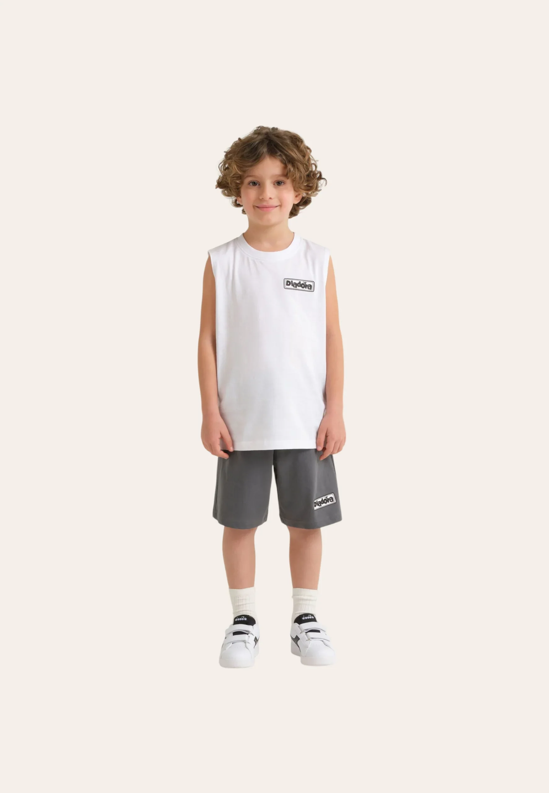 Una soluzione veloce e creativa per vestire i tuoi bimbi per la palestra: questo set sportivo per bambino composto da bermuda e top in abbinato è un outfit perfetto e completo che non può mancare nel guardaroba di un giovane atleta. Realizzato in 100% cotone.