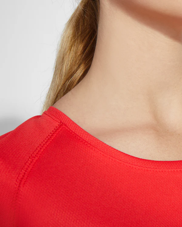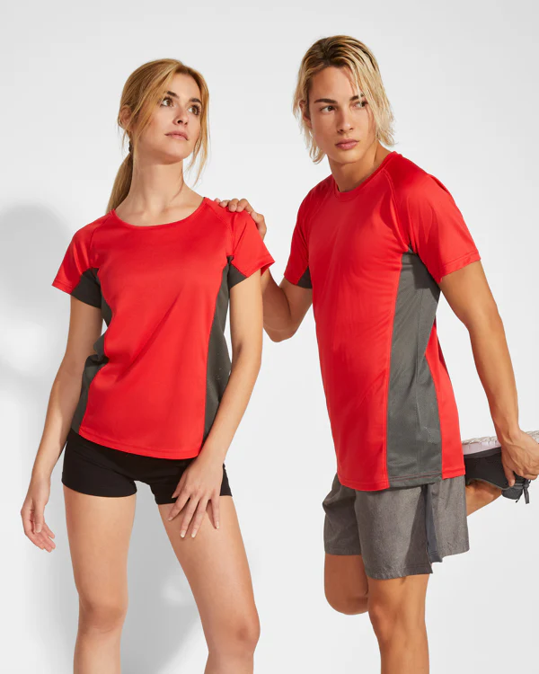 - T shirt tecnica con due tessuti in poliestere, maniche corte stile raglan