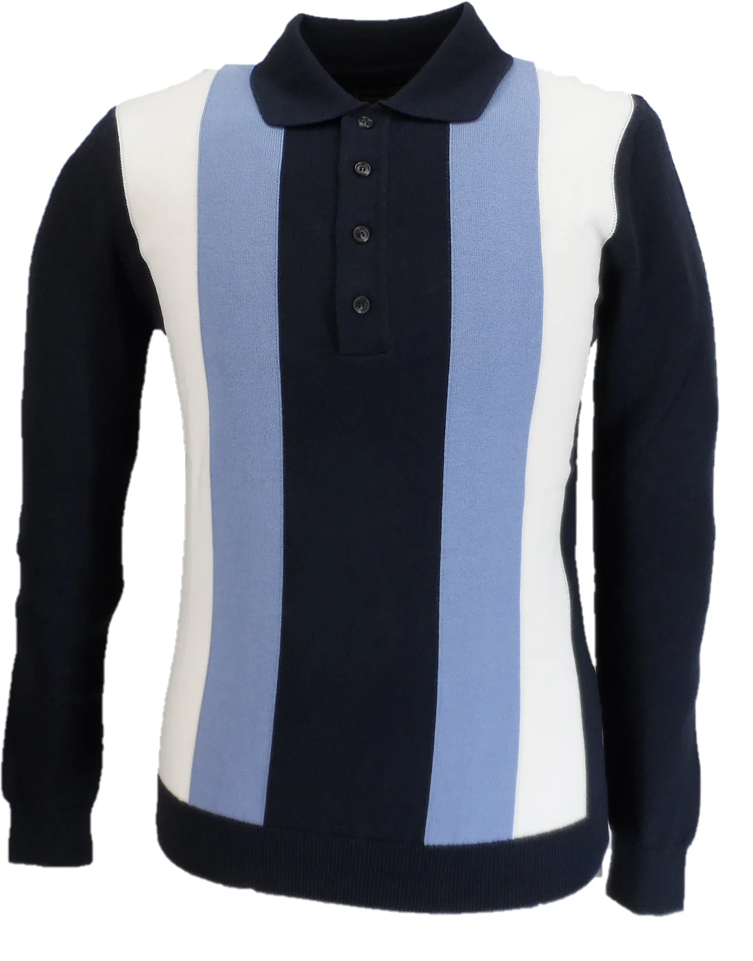 Ska & Soul Mens Best Blue Striped Knitted Polo Shirt