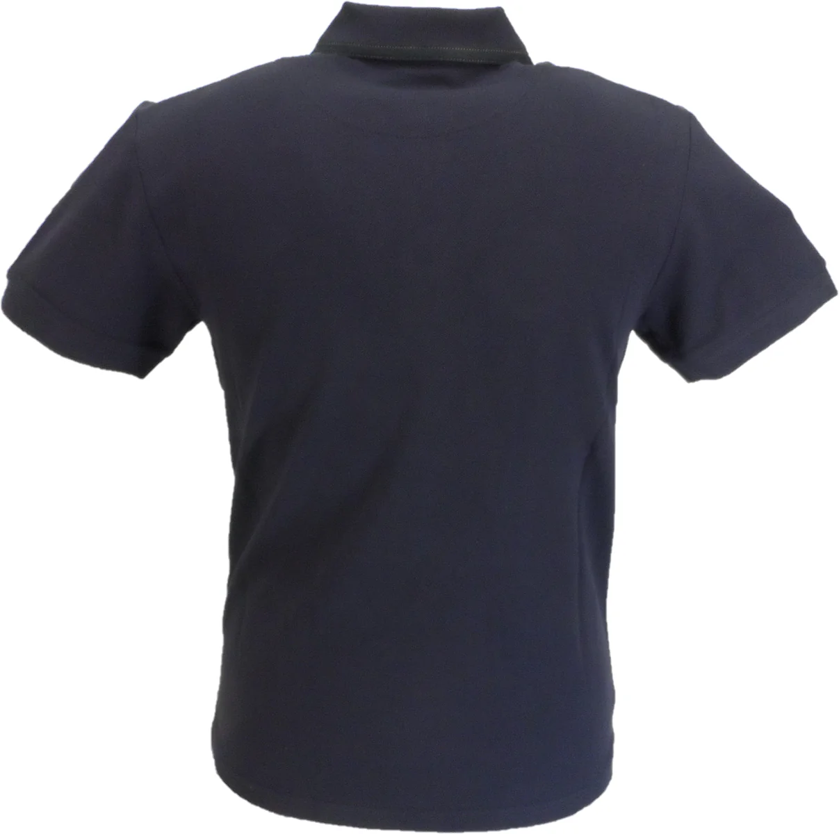 Pure cotton pique polo, with insert contrast pique panels, Taped with Alcantara (faux suede) trim with gold jean stitch, matched on collar trim. No exterior branding.