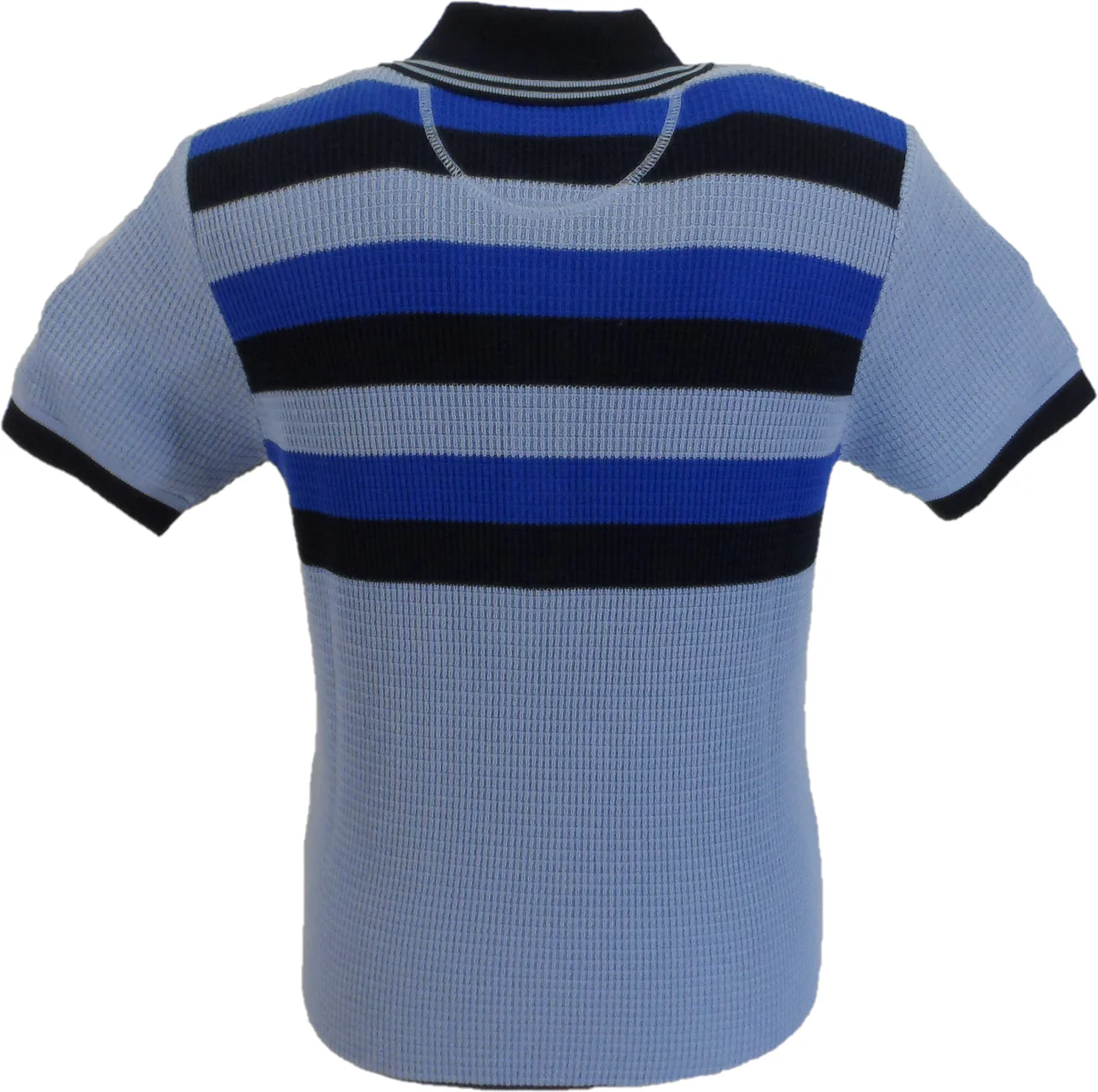 Ska & Soul Mens Sky Blue Striped Waffle Knited Polo Shirt