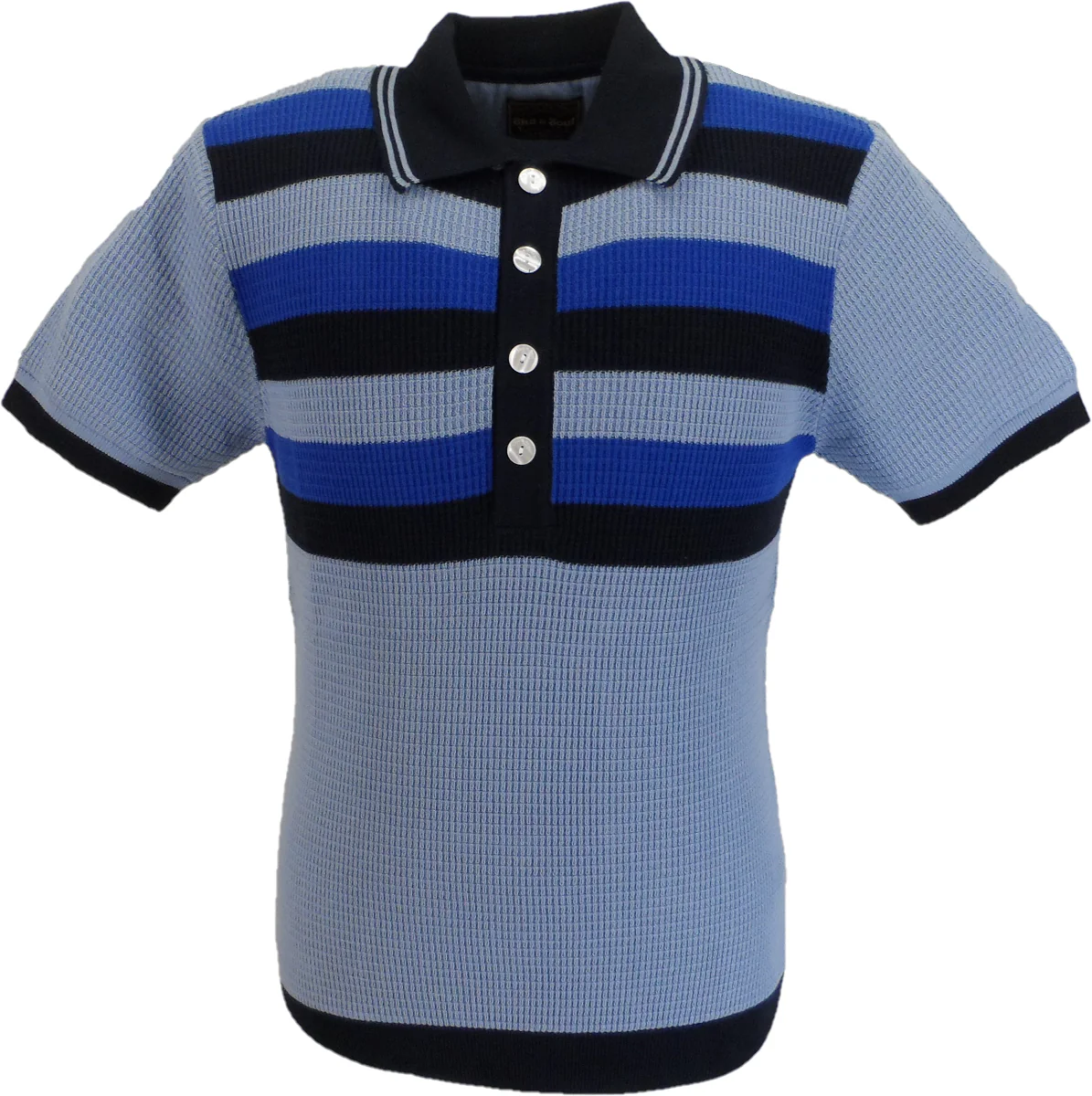 Recensisci per primo “Ska & Soul Mens Sky Blue Striped Waffle Knited Polo Shirt”