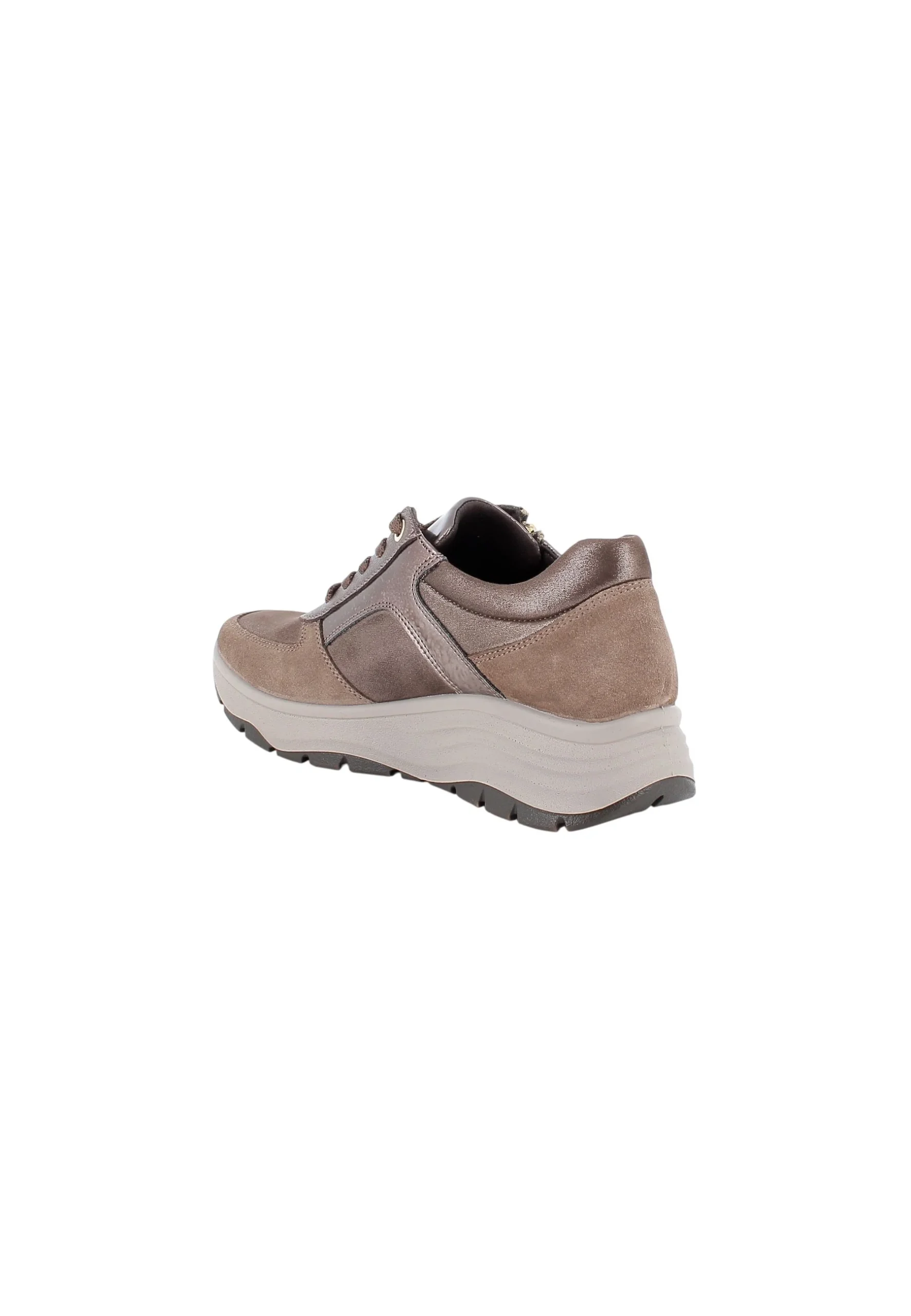 Le scarpe sono caratterizzate da una tomaia in pelle, fodera interna in tessuto, soletta in vera pelle, suola in sintetico. E’ prevista una chiusura con lacci regolabili e zip laterale.