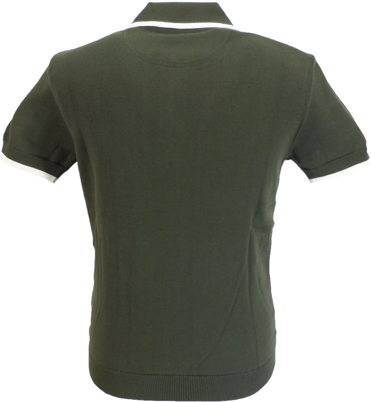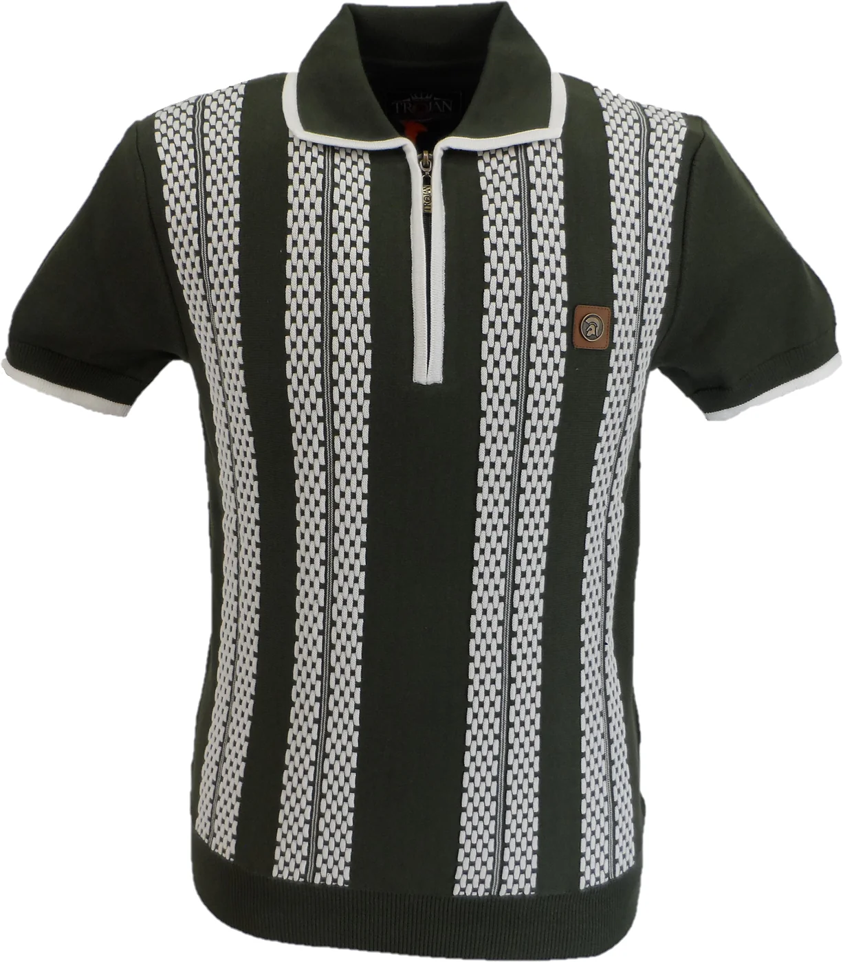 Recensisci per primo “Trojan Mens Army Green Zip Stripe Fine Gauge Zipped Knitted Polo Shirt”