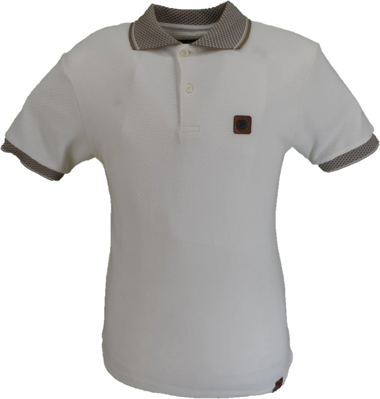 Trojan Mens Ecru Jacquard Collar Textured Polo Shirt