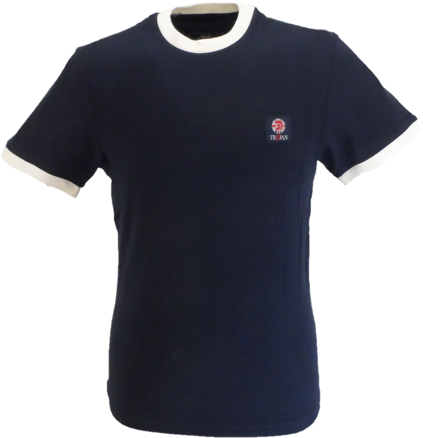 Recensisci per primo “Trojan Mens Navy Blue Flag Badge 100% Cotton Ringer T-Shirt”