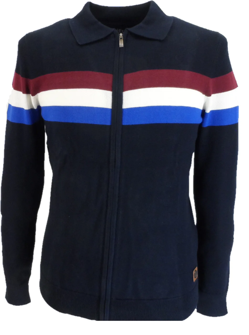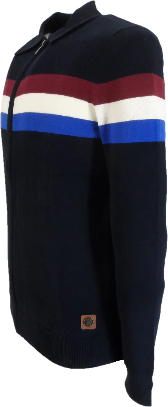 Trojan Mens Navy Blue Zip Up Stripe Cardigan