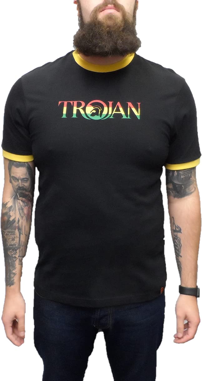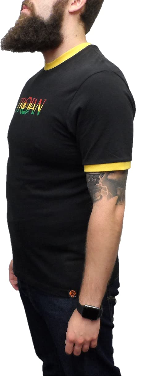 Trojan Records Mens Black Rasta Logo 100% Cotton Peach T-Shirt