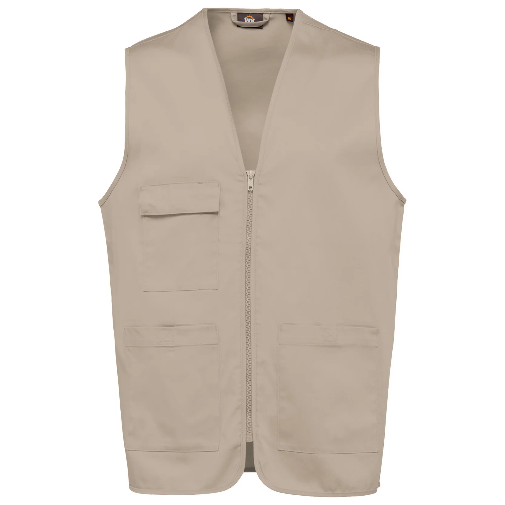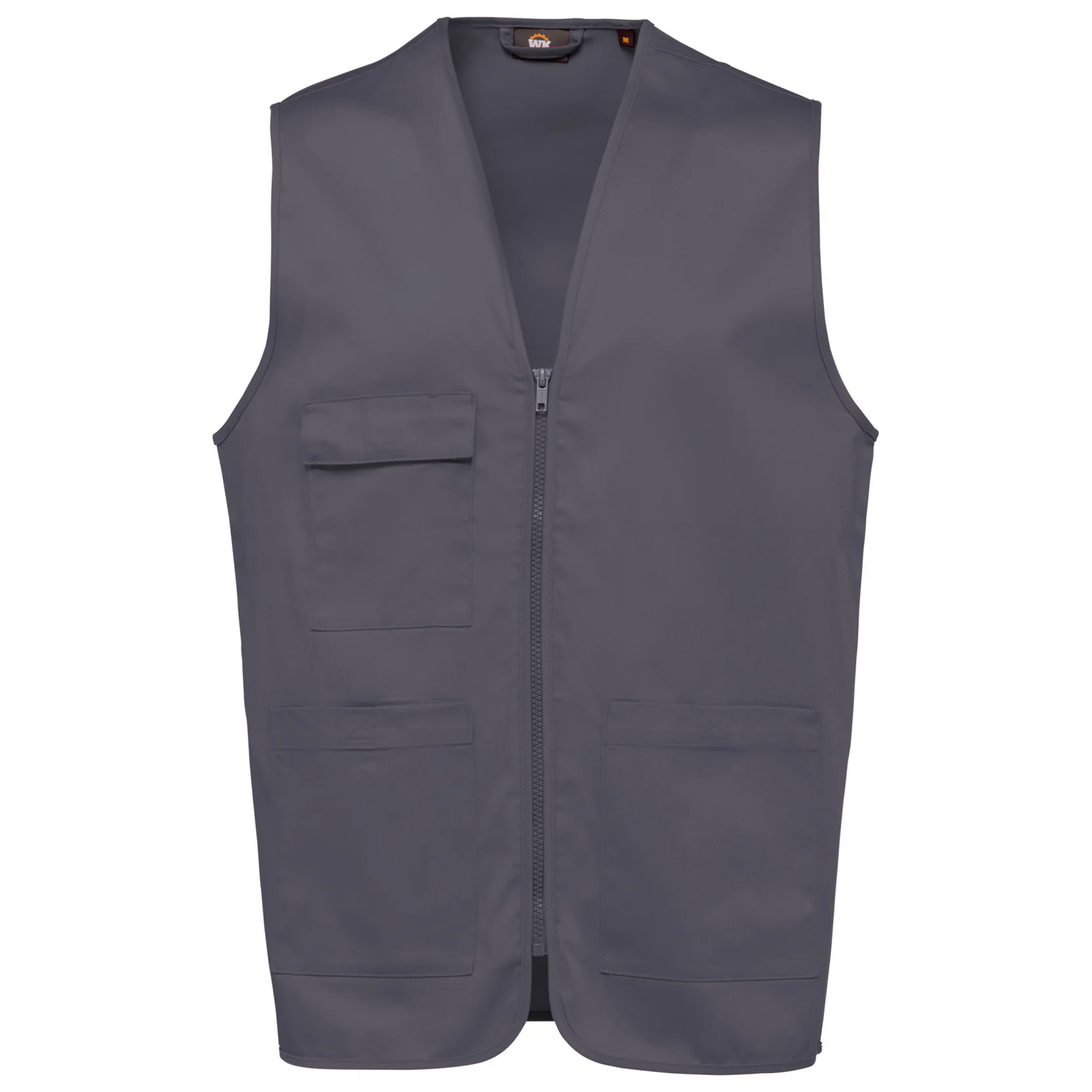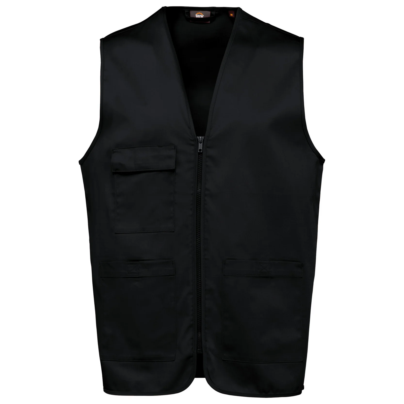 Esterno: 65% poliestere / 35% cotone. Taglio aderente. 2 ampie tasche a strappo applicate davanti + 1 tasca applicata sul petto con 1 scomparto porta penna. Chiusura con zip in plastica tono su tono. Asola all’interno del collo per appendere il capo. Parte posteriore leggermente più lunga. Finitura con sbieco tono su tono sul giromanica e sui bordi del capo. Etichetta con il nome all’interno del capo. Etichetta con il nome del marchio staccabile.
