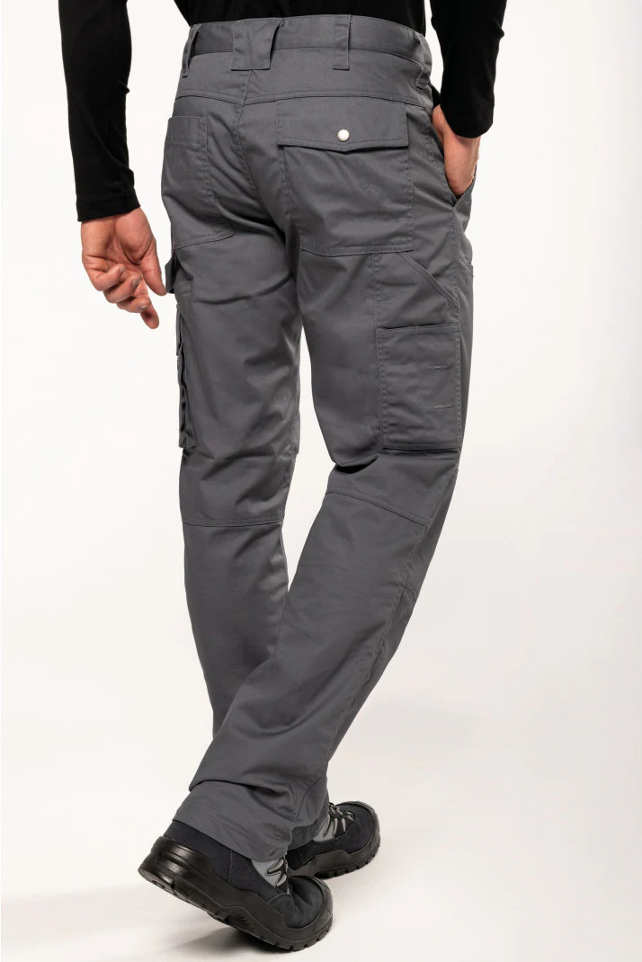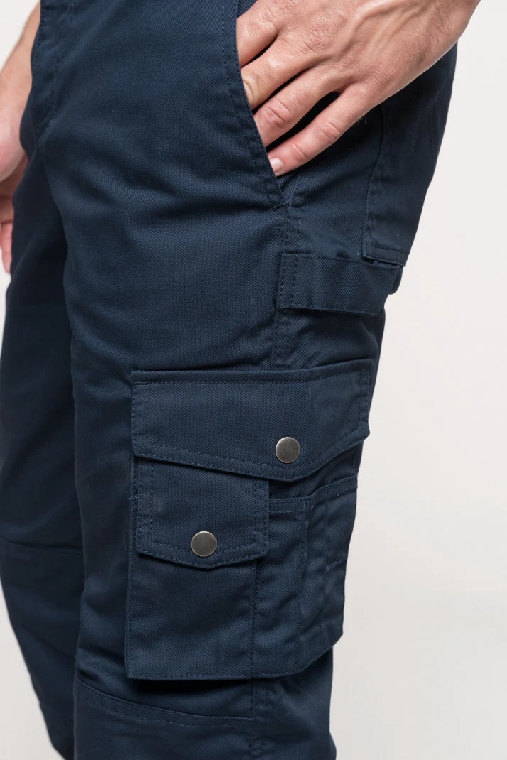 65% Poliestere / 35% Cotone. Zip e bottoni. Cucitura inguine rinforzata con tripla impuntura. 3 tasche anteriori, 3 tasche posteriori e 1 tasca laterale. Massimo confort alle ginocchia per facilitare il movimento. Certificato STANDARD 100 by OEKO-TEX®N° CQ1007/7, IFTH.