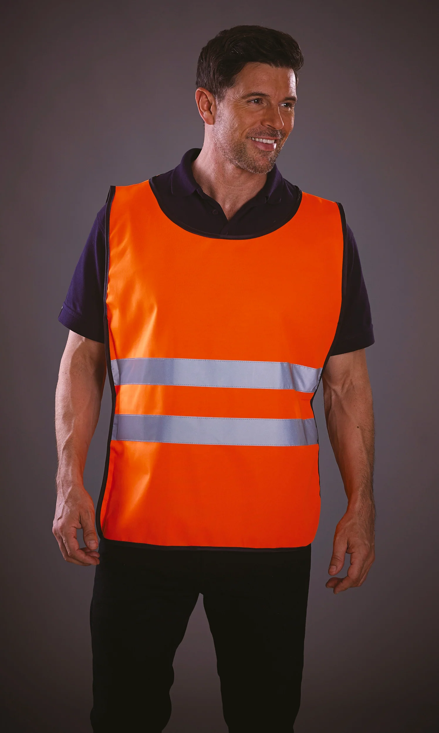 100% poliestere. Chiusura tramite elastico e velcro di 10 cm su ciascun lato. Due fasce riflettenti di 5 cm attorno al corpo. Conforme alla norma EN11550:1999.
