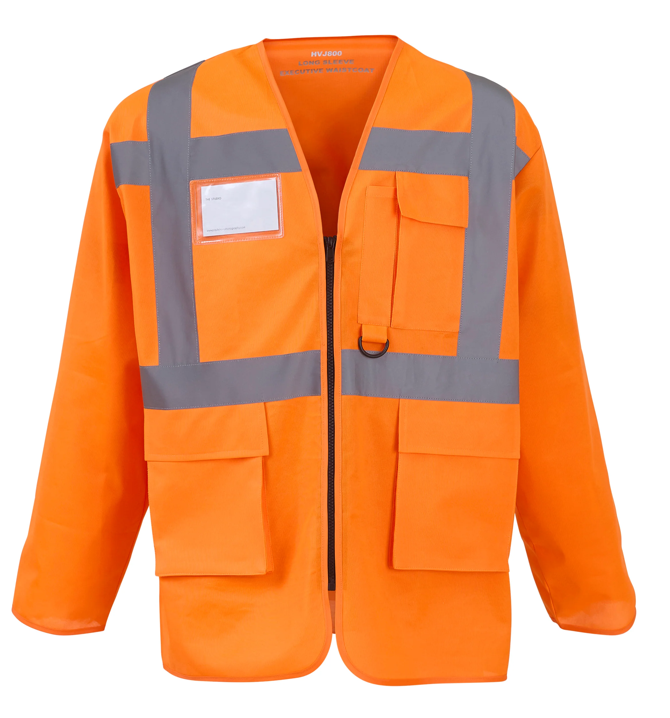 100% poliestere. Strisce riflettenti larghe 3,5 cm intorno al corpo, alle braccia e sulle spalle; tasca per cellulare/walkie-talkie sul petto a sinistra; chiusura full zip sul davanti; due tasche con patta nella parte inferiore del capo, accessibili dall’alto e di lato; tasche per penne e portachiavi; taschino trasparente per documento di identità sul petto, a destra; ampio spazio per la decorazione sulla schiena. Conforme a EN ISO20471: 2013 Categoria 3.