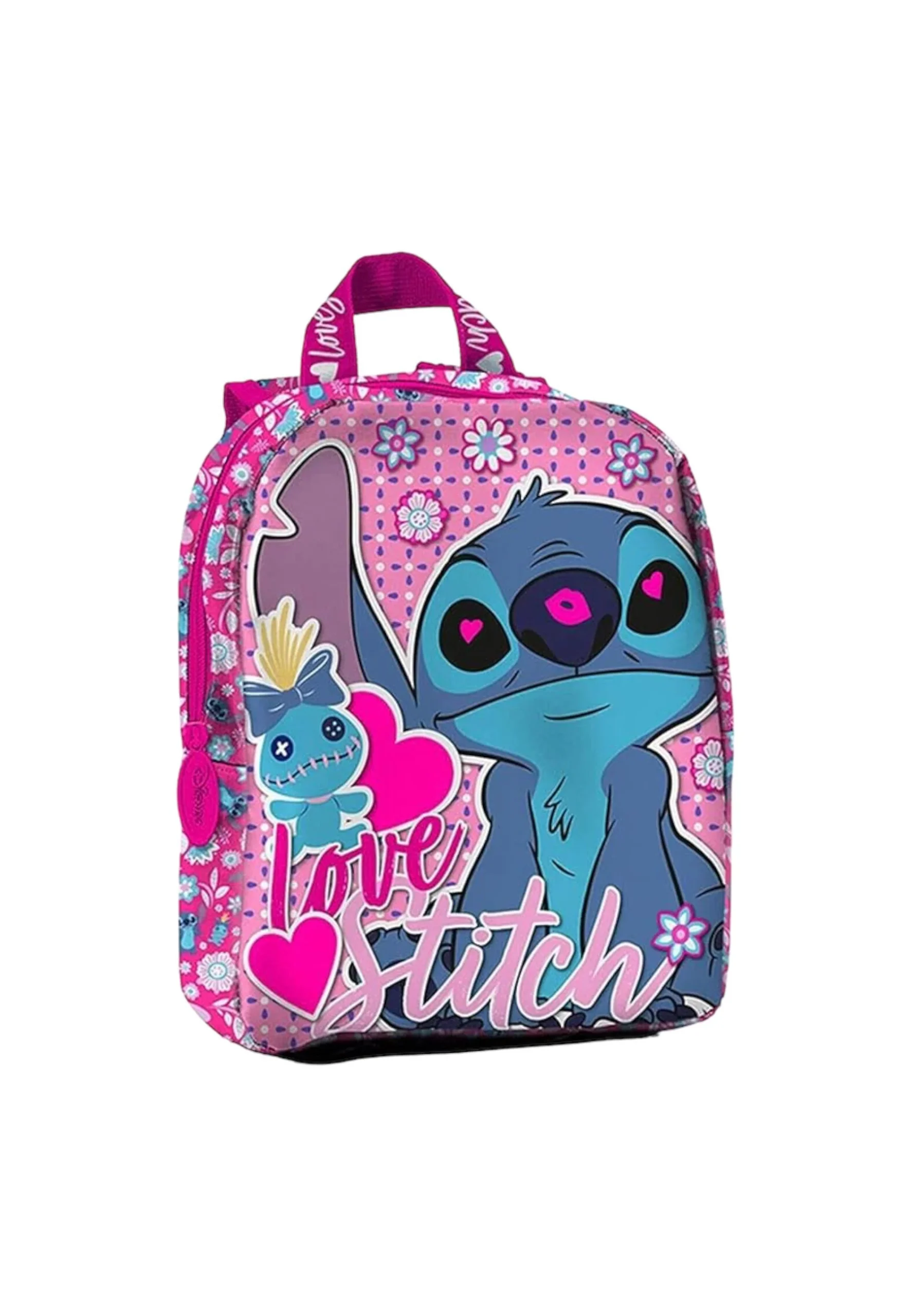 Questo simpatico e pratico zaino di Lilo & Stitch prevede una doppia chiusura con zip ed è possibile portarlo in spalla grazie agli spallacci di cui è dotato o a mano grazie al comodo manico posto sulla parte superiore dello zaino.